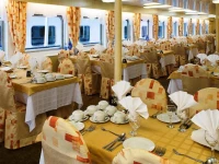 Теплоход Михаил Булгаков (Mihail Bulgakov) - один из самых комфортабельных четырехпалубных судов речного флота России, построенный на верфях Германии (проект 301) и капитально отремонтированный несколько лет назад в Финляндии. Все каюты оборудованы душем с евросантехникой, туалетом, кондиционером, имеют панорамные окна, холодильник, фен, (спутниковые,телевизионные и общесудовые каналы), телефон внутренней связи. Ранее теплоход носил название "Максим Рыльский".