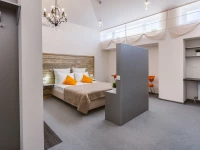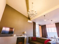 Это незаурядное место в центре города, сочетание эстетики интерьеров, домашнего уюта и современного комфорта. Основная идея интерьера апарт-отеля - контраст стилей: шик, роскошь и классика в сочетании с брутальным лофтом. Классические светлые стены и лофтовые стены темно- серого цвета. Роскошные хрустальные люстры и оцинкованные вентиляционные трубы. Традиционный камин и подвесные чугунные светильники. В интерьерах апарт-отеля комфортно жить, приятно проводить знаменательные события и наслаждаться неуловимо-богемной атмосферой.