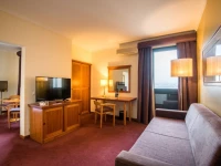 Отель предоставляет Вашему вниманию фитнес – центр который состоит из всех необходимых элементов чтобы позаботится о Вашем здоровье и отличном самочувствии. Здесь в своем рапоряжениии Вы сможете найти сауну, кабинеты для массажа и проведения эстетических процедур, джакузи, турецкую баню, душ виши, закрытый подогреваемый бассейн и тренажерный зал.