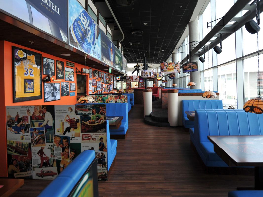 В изящном интерьере ресторана притягивают внимание яркая неоновая реклама, плакаты и фотографии политических лидеров США, мировые звезды Голливуда, рок-музыканты и легенды американского спорта вместе с атрибутикой различных видов спорта. Фоном звучит музыка американских радиостанций. Наше меню вдохновлено кухней южных штатов Америки.