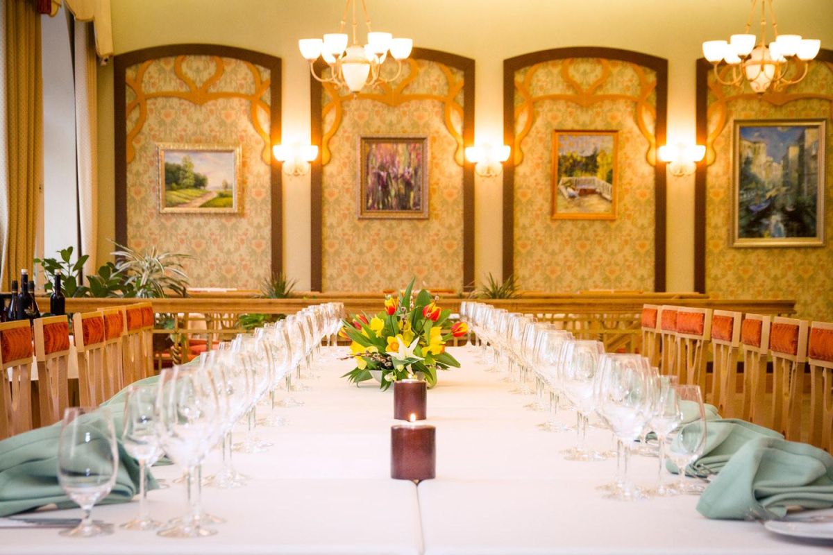 В соответствии с духом золотого века женственности мы использовали в интерьере тонкие и изящные линии. В просторном зале есть много антикварной мебели, антикварный рояль с красивым звучанием и много комнатных растений, уместных в стиле югенд.