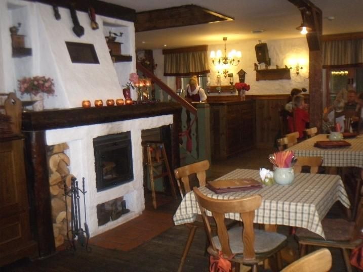 В обеденные часы посетителям предлагается недорогой шведский стол с выбором супов или плотный обед из второго блюда и напитка. В эти часы здесь особенно людно! Ресторан также служит превосходным местом для уютного ужина при свете камина или свечей. Ресторан рассчитан на 100 мест.