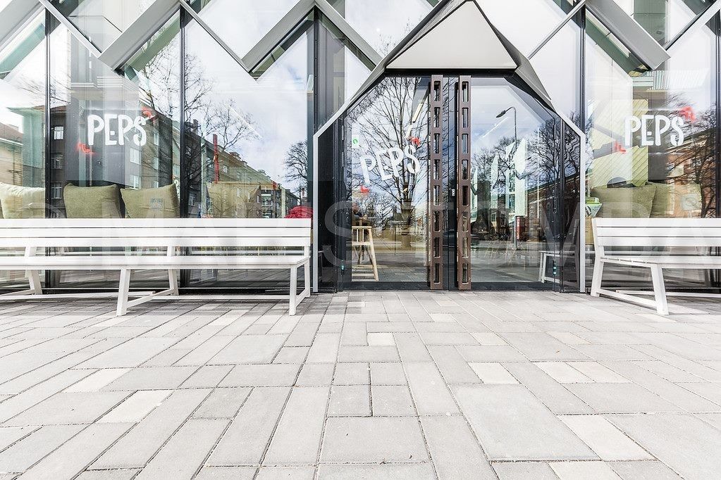 Peps – это предлагающий вкусные блюда простой винный ресторан с индустриальным дизайном, находящийся в ультрасовременном позолоченном и застекленном доме.