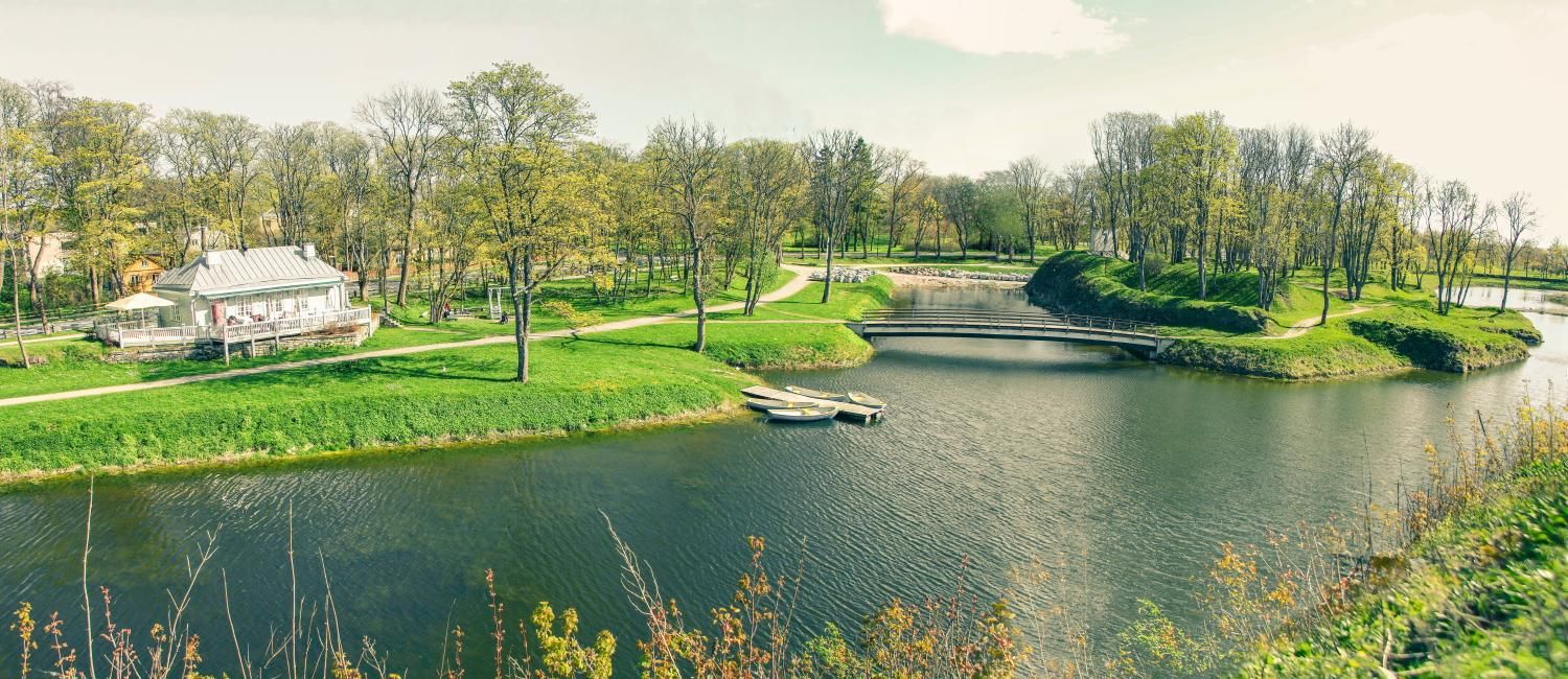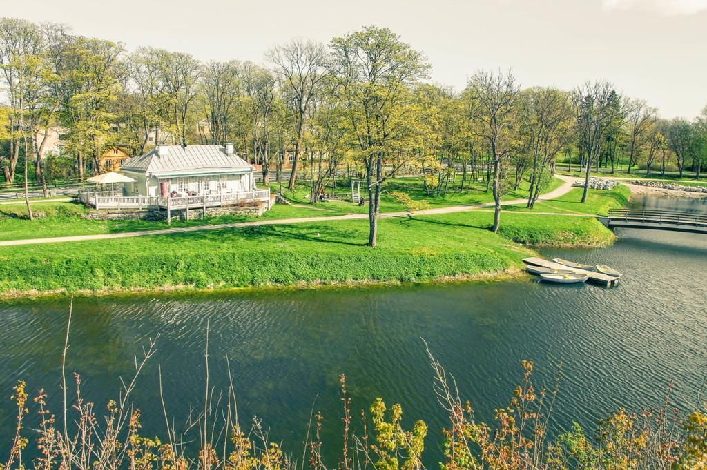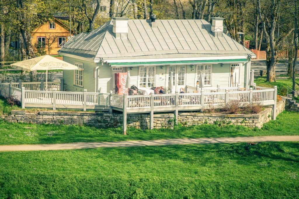 Кафе Nautleja находится в пастельно-зеленом здании на краю парка при замке Курессааре.