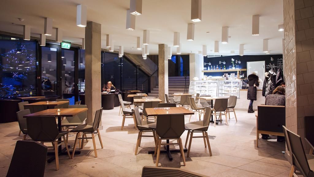 В кафе каждый день доступно меню a la carte, а по будням здесь можно получить быстрый обед из числа дневных предложений. На кондитерском прилавке посетителей ждет богатый выбор пирожных, десертов, салатов, врапов, бутербродов и т.д.