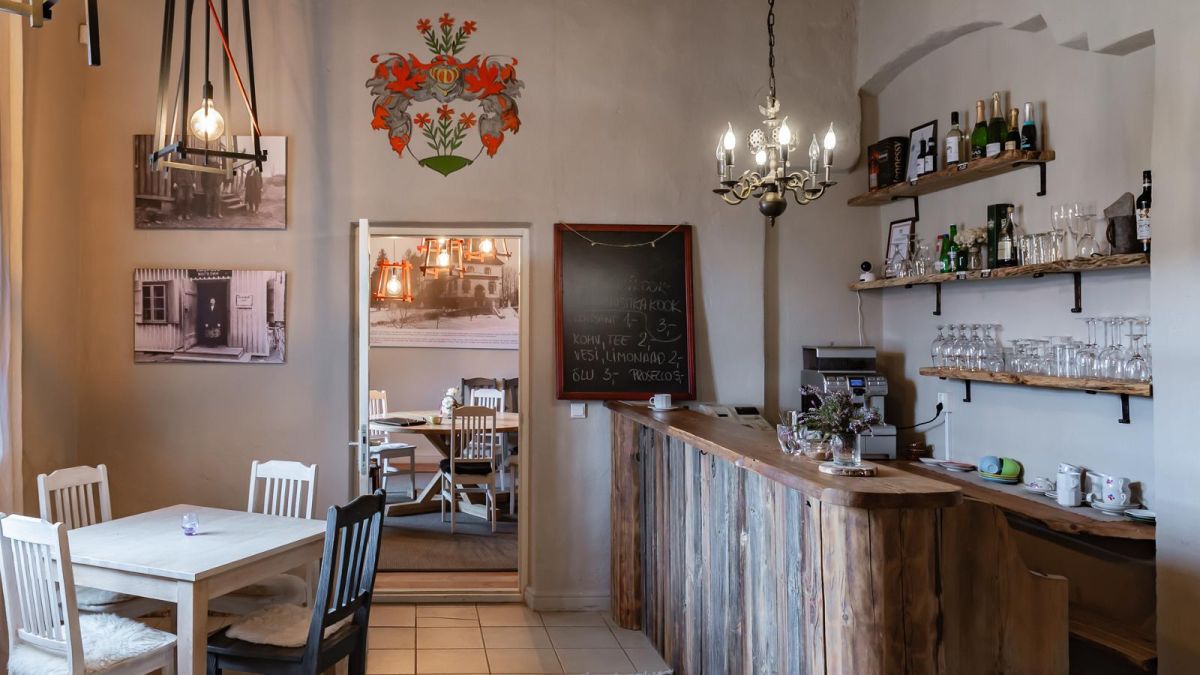 На первом этаже гостевого дома Linakoja на мызе Моосте находится просторное кафе с уютным интерьером Sume Sõstar.