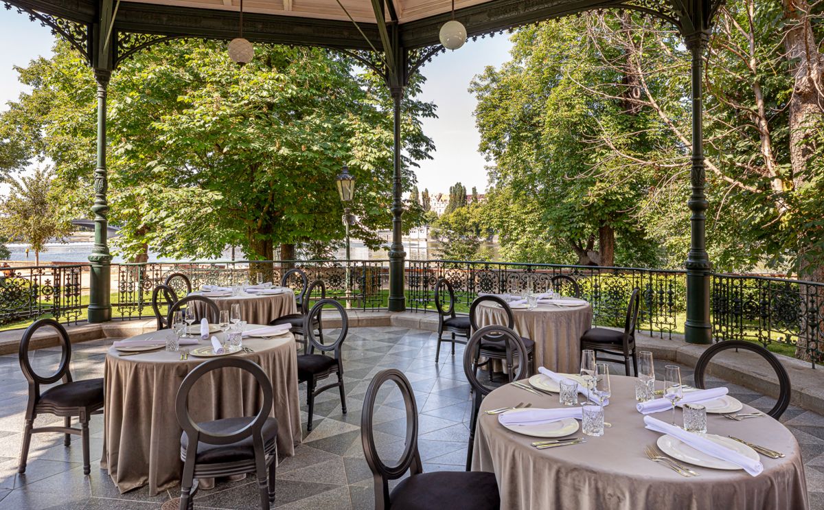 В зимний период неоренессансные залы дворца Жофин приглашают окунуться в оригинальные вкусы и ароматы нового ресторана сегмента fine dining, где блюда высокой кухни готовит команда под руководством шеф-повара Йиржи Носека. В летнее время «Сад Жофин», расположенный посреди природы прекрасного Славянского острова, предлагает посетителям еду, приготовленную на открытом гриле. Ассортимент удовлетворит любителей стейков или плодов моря, а также приверженцев лёгкой и вегетарианской пищи. Здесь можно скрыться от столичной суеты, отдохнуть и расслабиться в тени деревьев, слушая лишь убаюкивающий шёпот реки Влтавы.