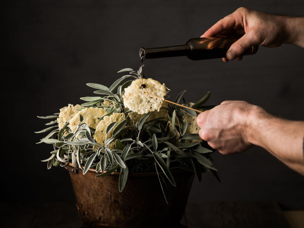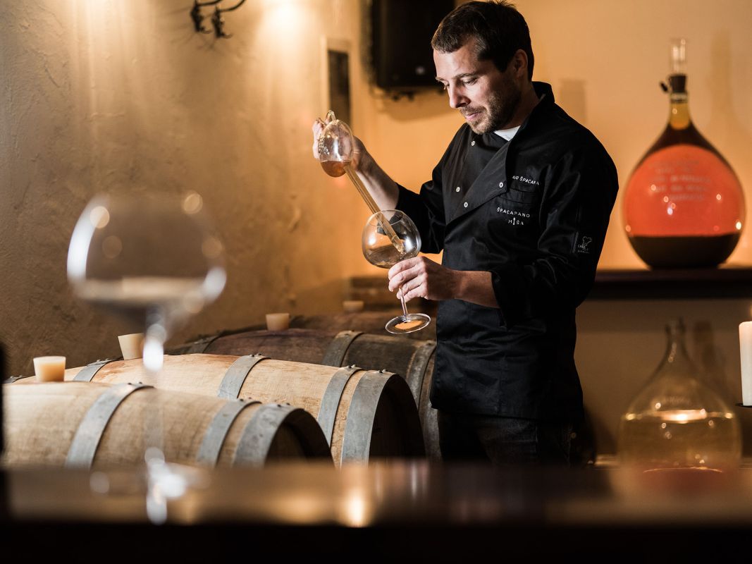 Само собой разумеется, что в Špacapan все ингредиенты свежие, местные, и многие из них производятся семьей. Во многом это заслуга отца Иво Шпакапана, страстного охотника и виноградаря. Они особенно гордятся своими виноградниками. Особое внимание уделяется местным карстовым сортам и производству натуральных вин без дрожжей и серы. В винной карте, насчитывающей более 90 вин, преобладают вина из Приморья.