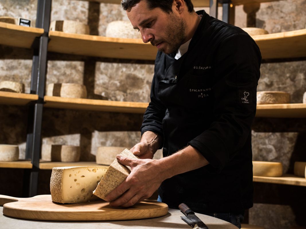 У них также есть помещение для созревания сыра и винный погреб, а также оборудование для производства прошутто. Не уезжайте отсюда, не попробовав их карстский прошутто из кршкольской свиньи и домашнюю салями.