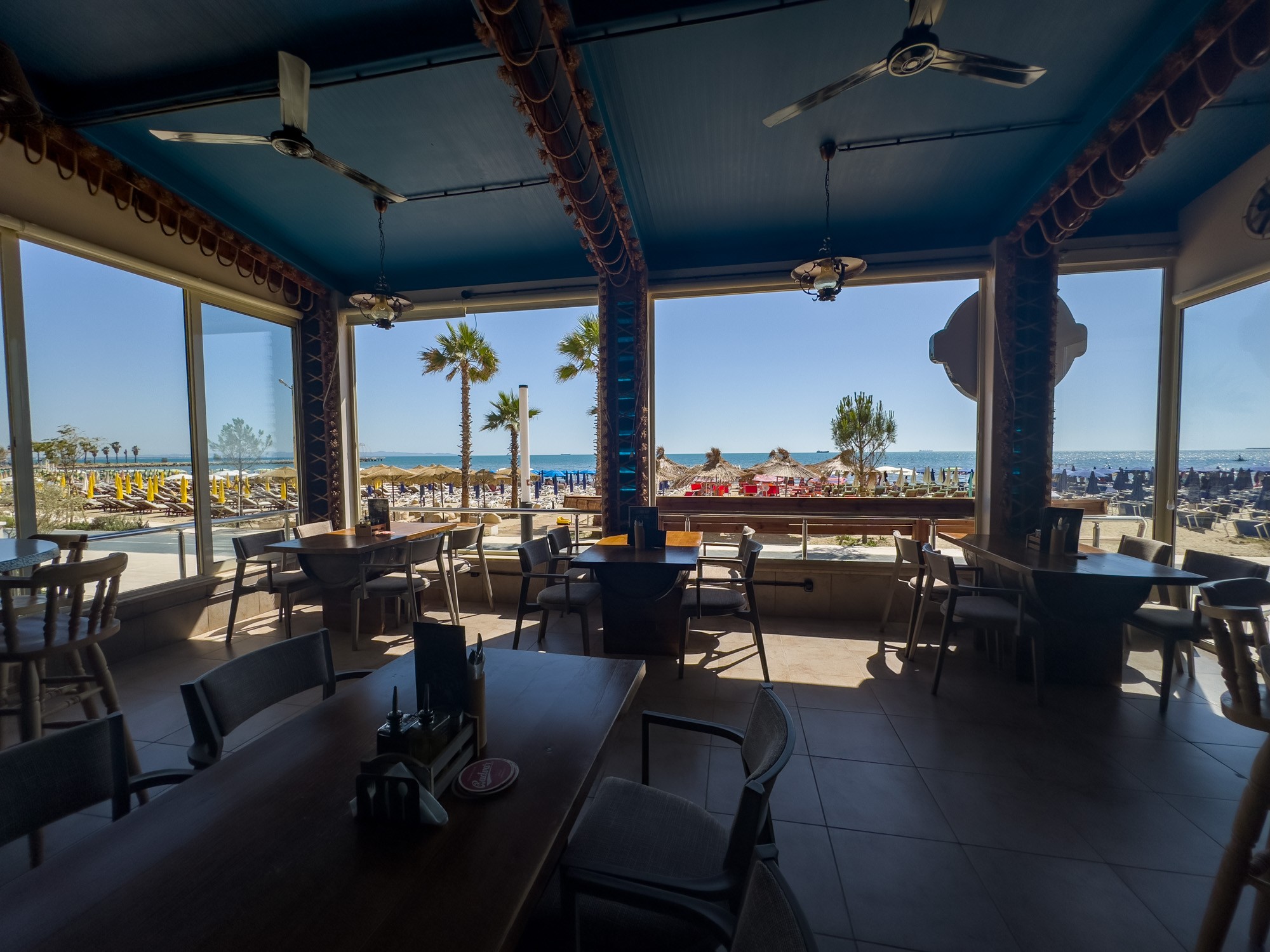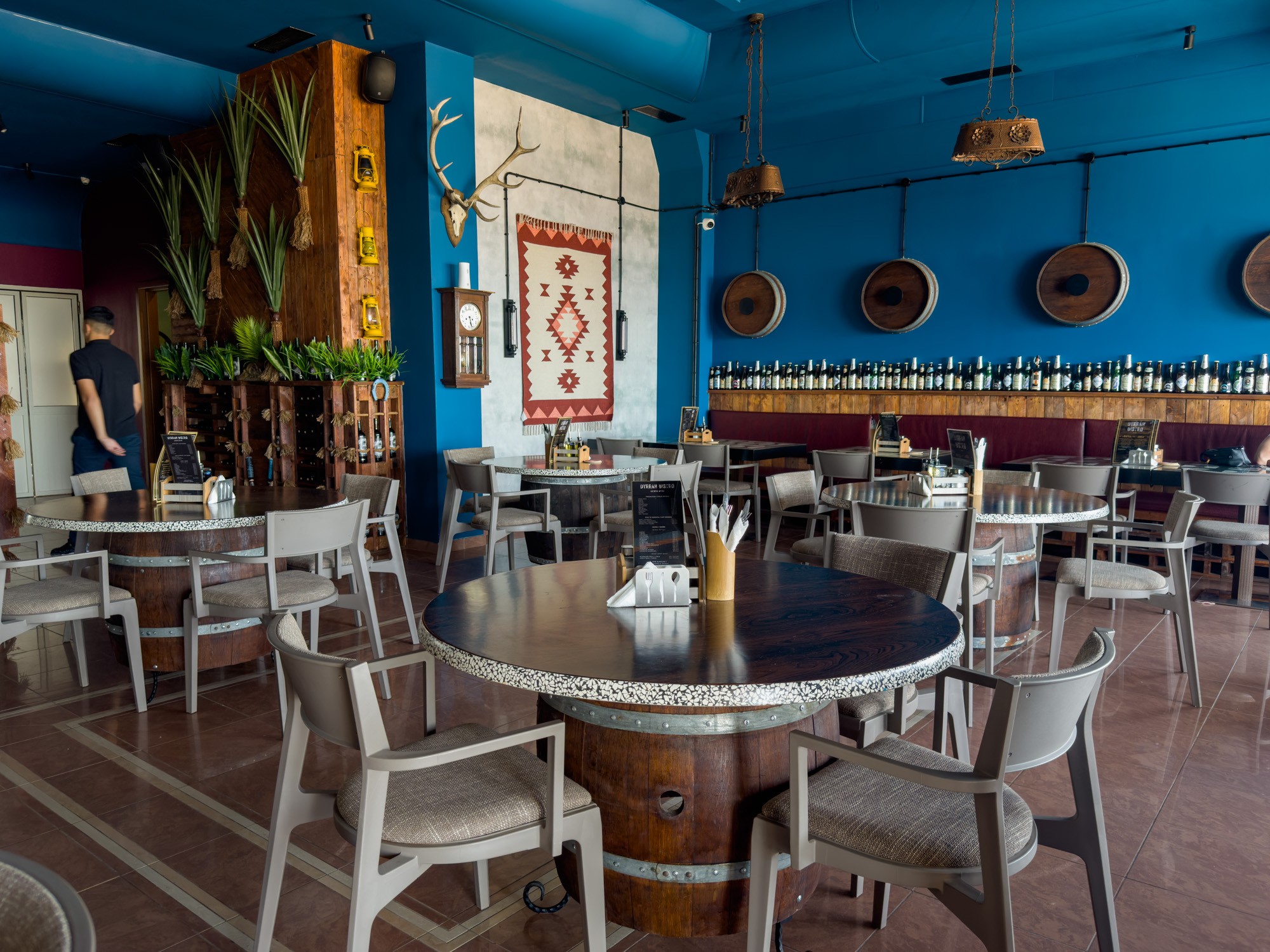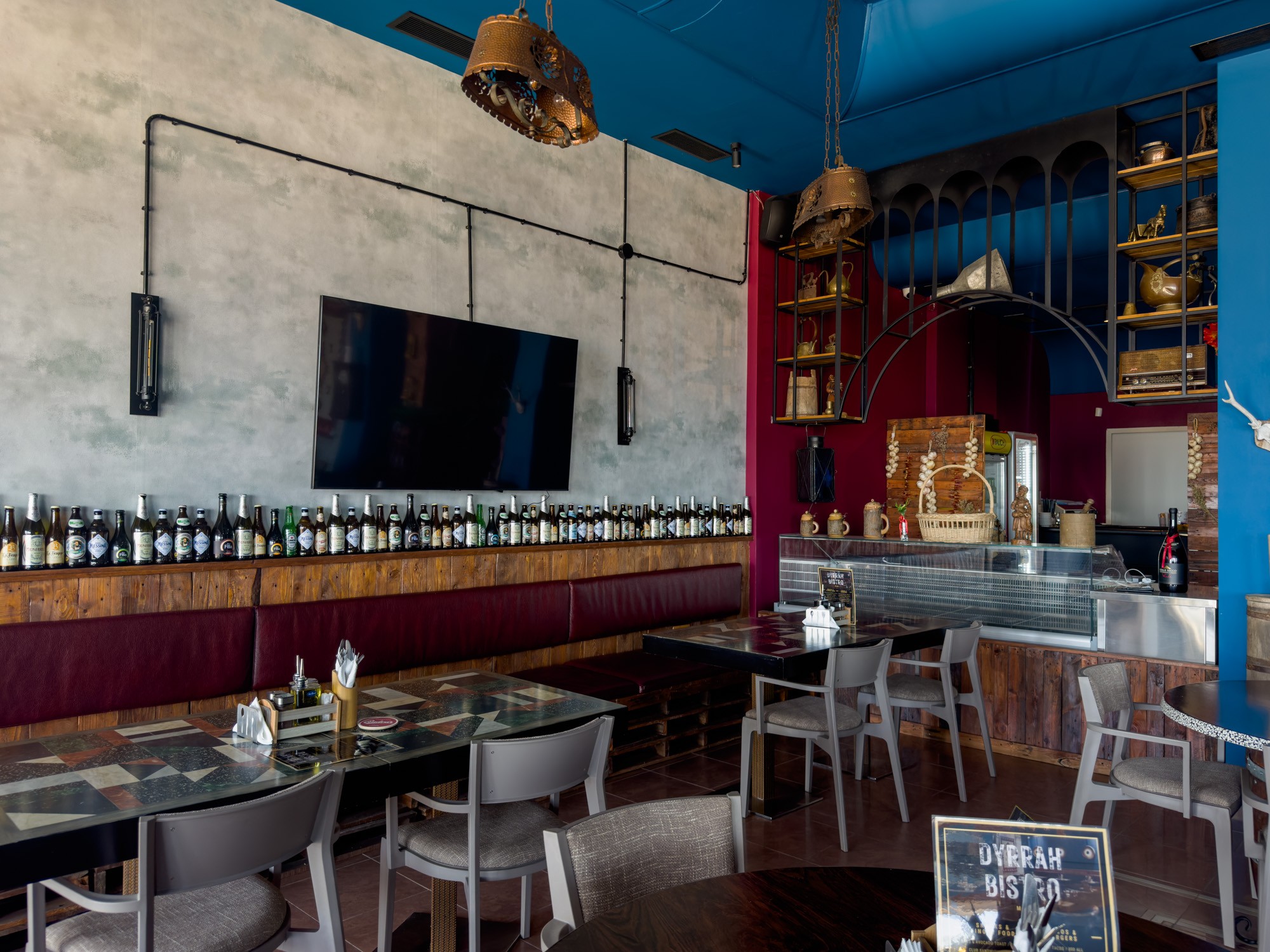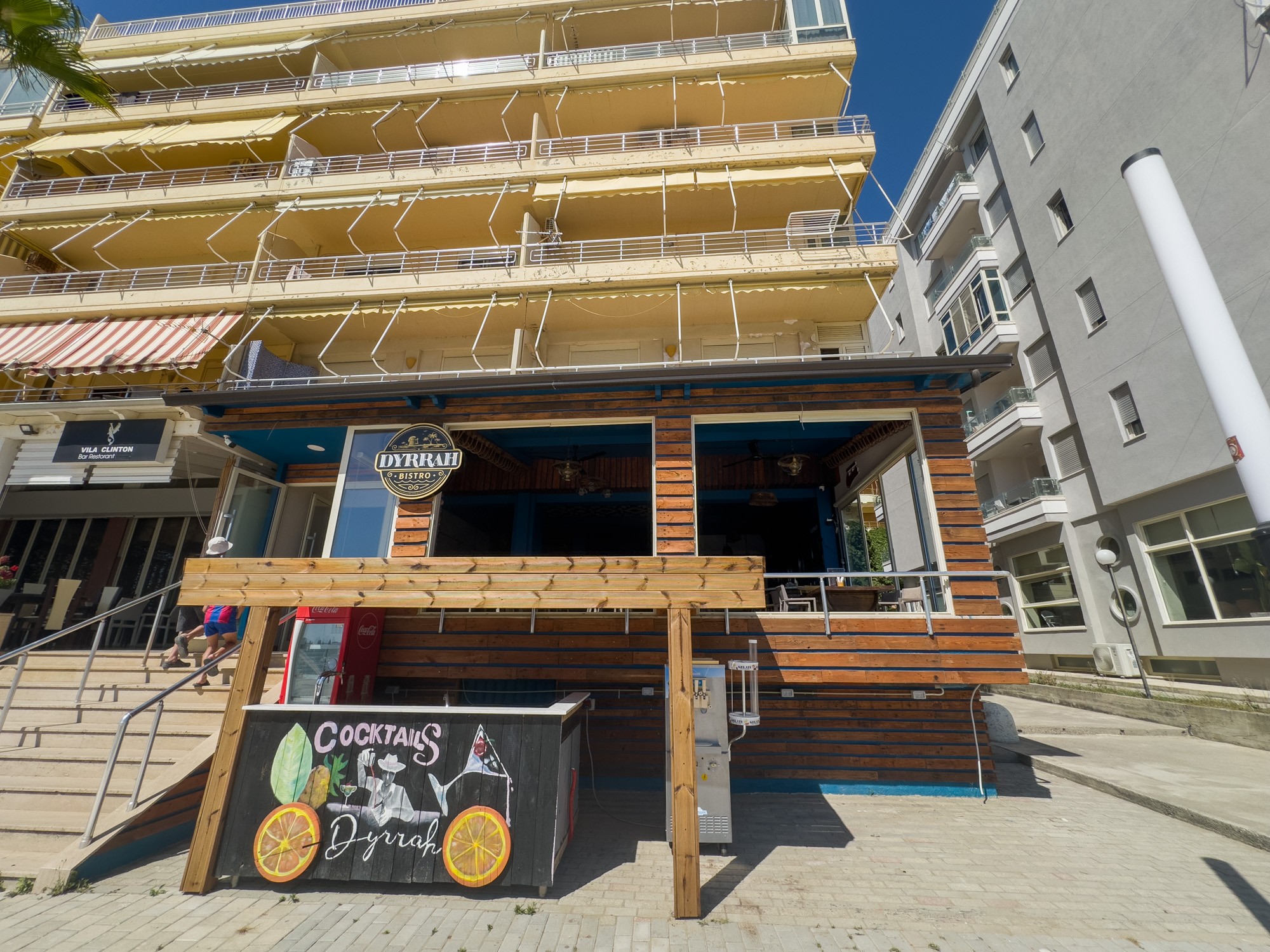 Dyrrah Bistro, Дуррес – это место, которое привлекает своим необычным интерьером и вкусным меню. Два маленьких стола, выполненных в виде бочек, придают особый шарм и создают атмосферу уюта. Эти оригинальные элементы декора подчеркивают связь заведения с винодельческими традициями региона. Внутреннее пространство также украшают панно с изображением оливкового дерева, символизирующего долгую историю местных ремесел, а декоративные элементы, вдохновленные албанскими народными традициями, добавляют аутентичности.