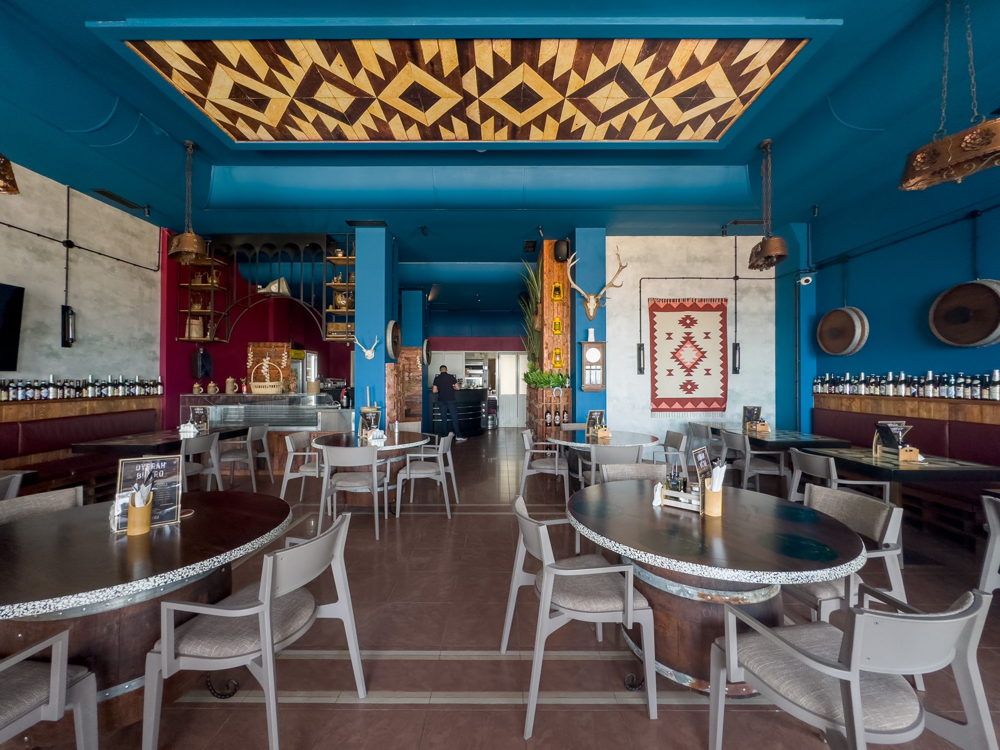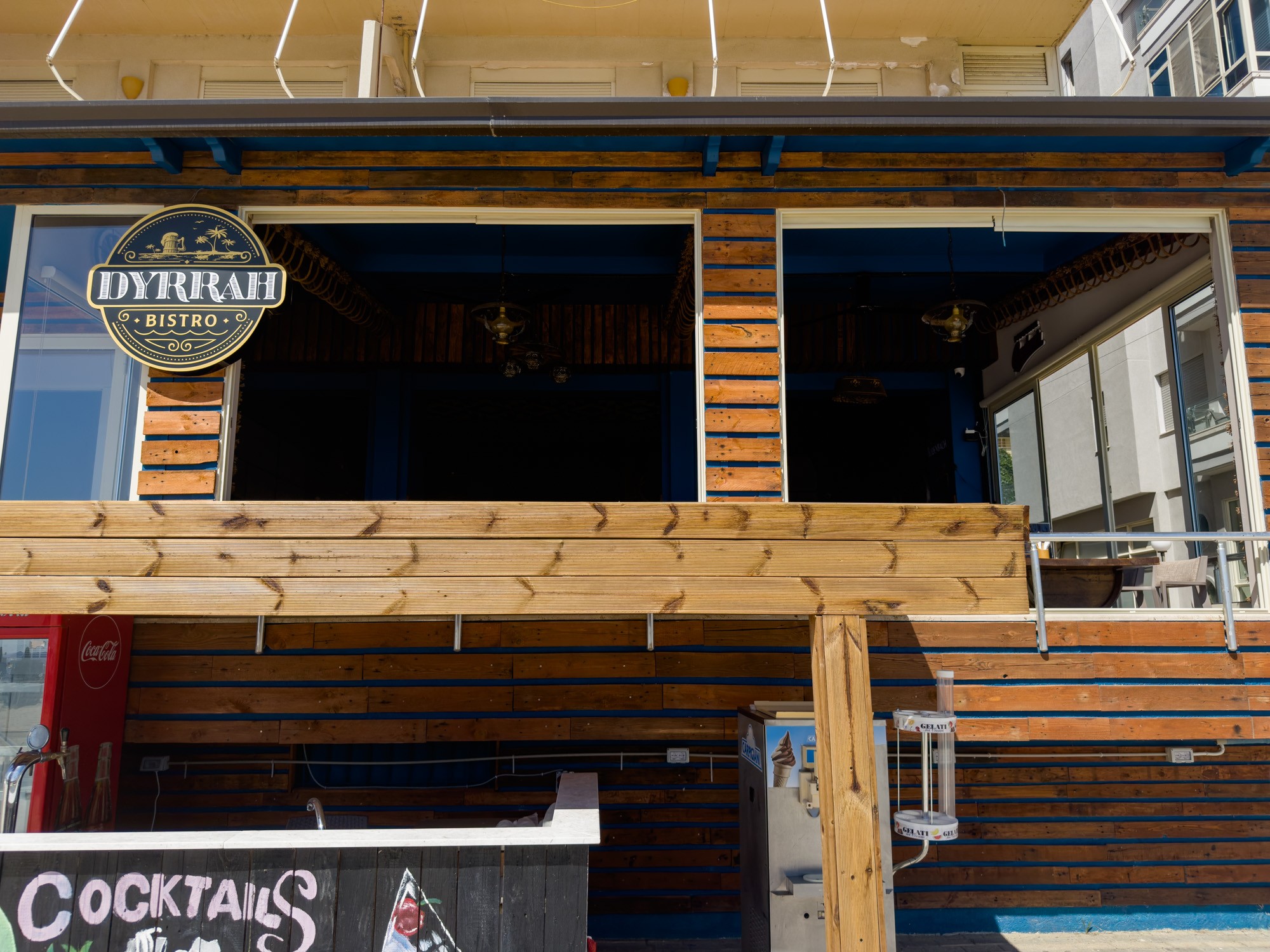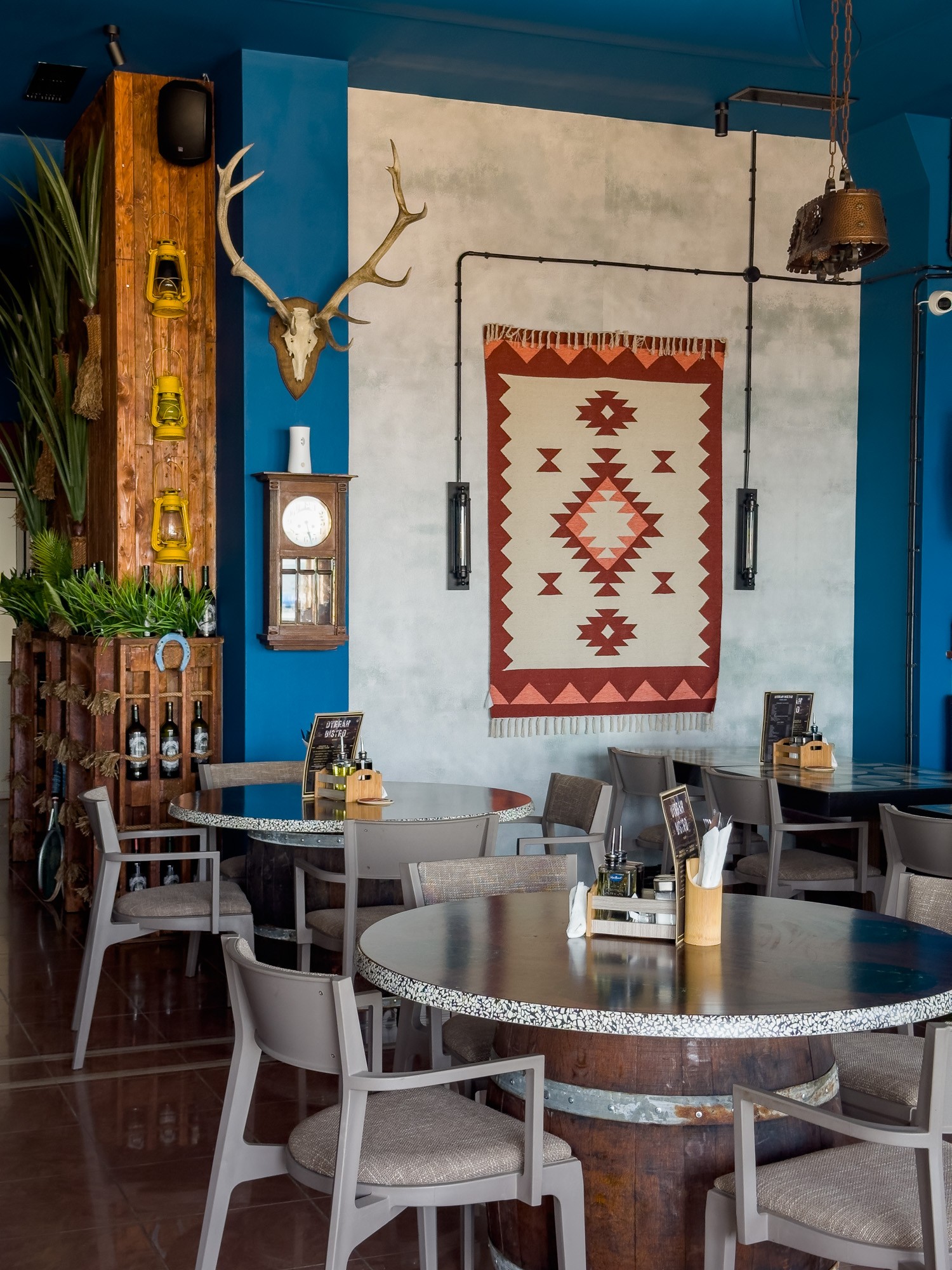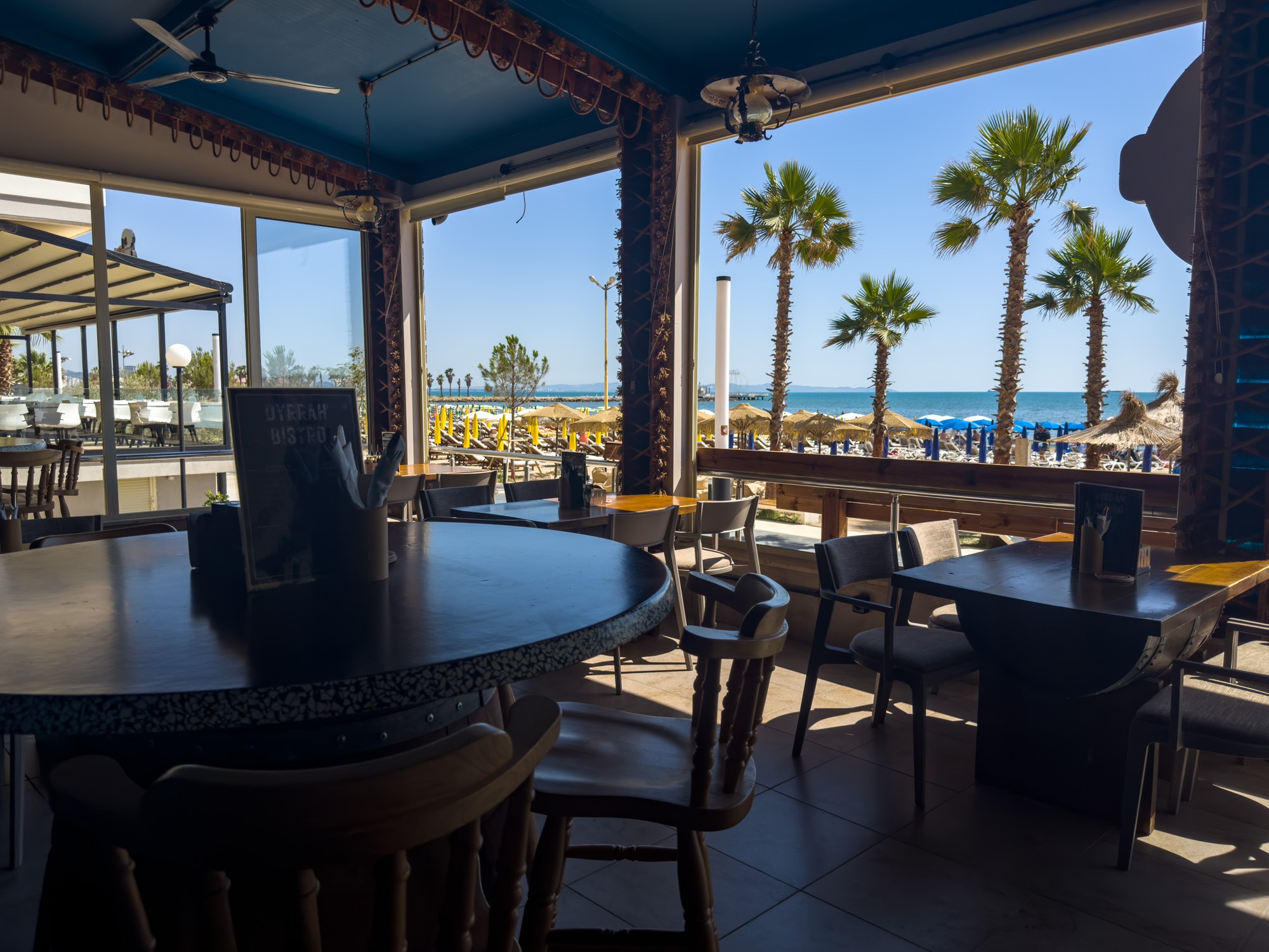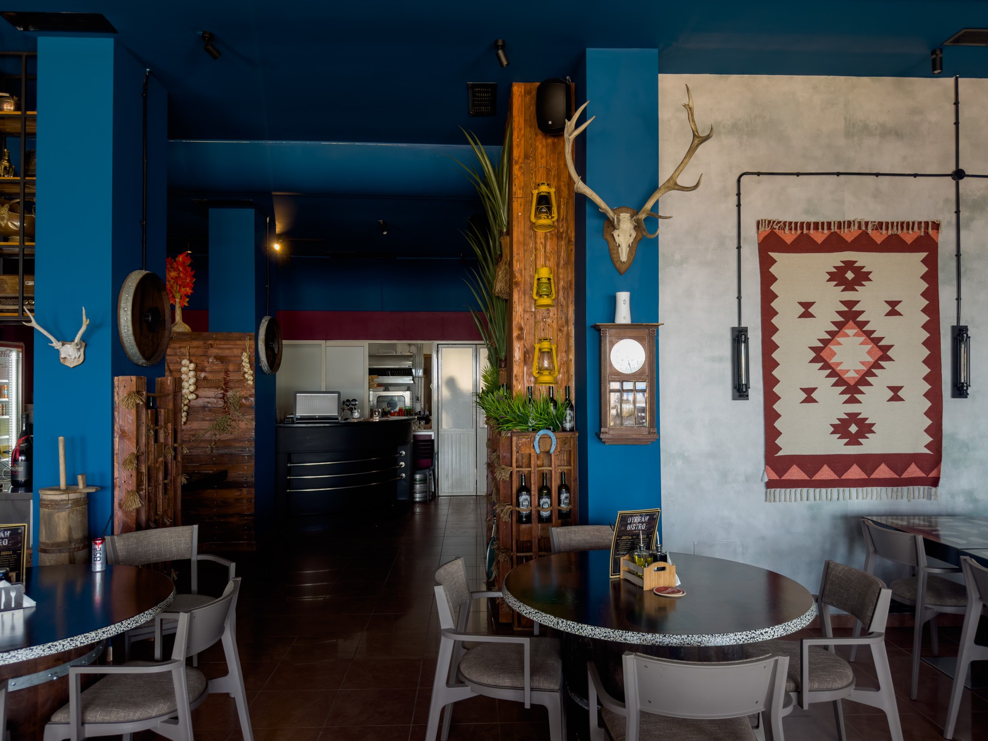 Dyrrah Bistro, Дуррес – это место, которое привлекает своим необычным интерьером и вкусным меню. Два маленьких стола, выполненных в виде бочек, придают особый шарм и создают атмосферу уюта. Эти оригинальные элементы декора подчеркивают связь заведения с винодельческими традициями региона. Внутреннее пространство также украшают панно с изображением оливкового дерева, символизирующего долгую историю местных ремесел, а декоративные элементы, вдохновленные албанскими народными традициями, добавляют аутентичности.
