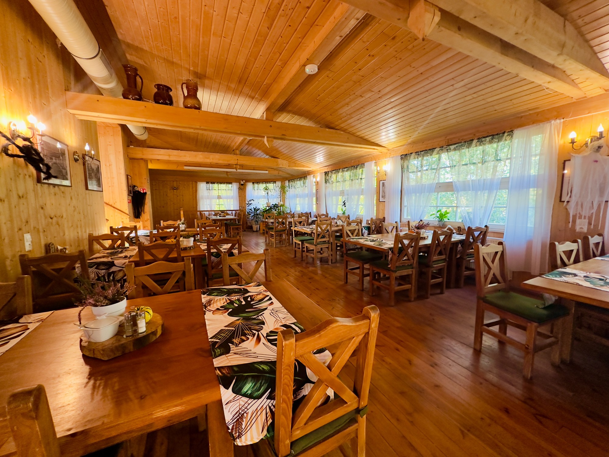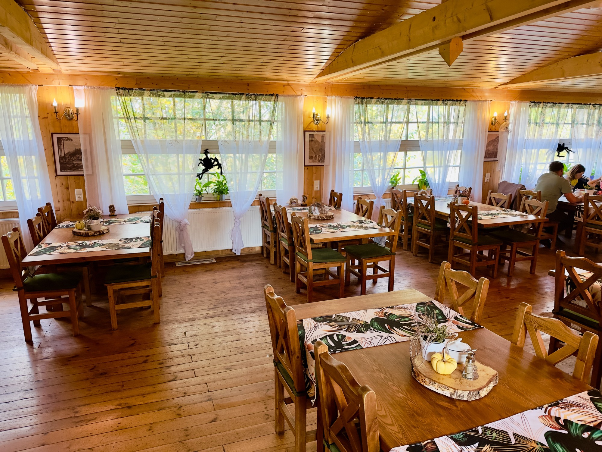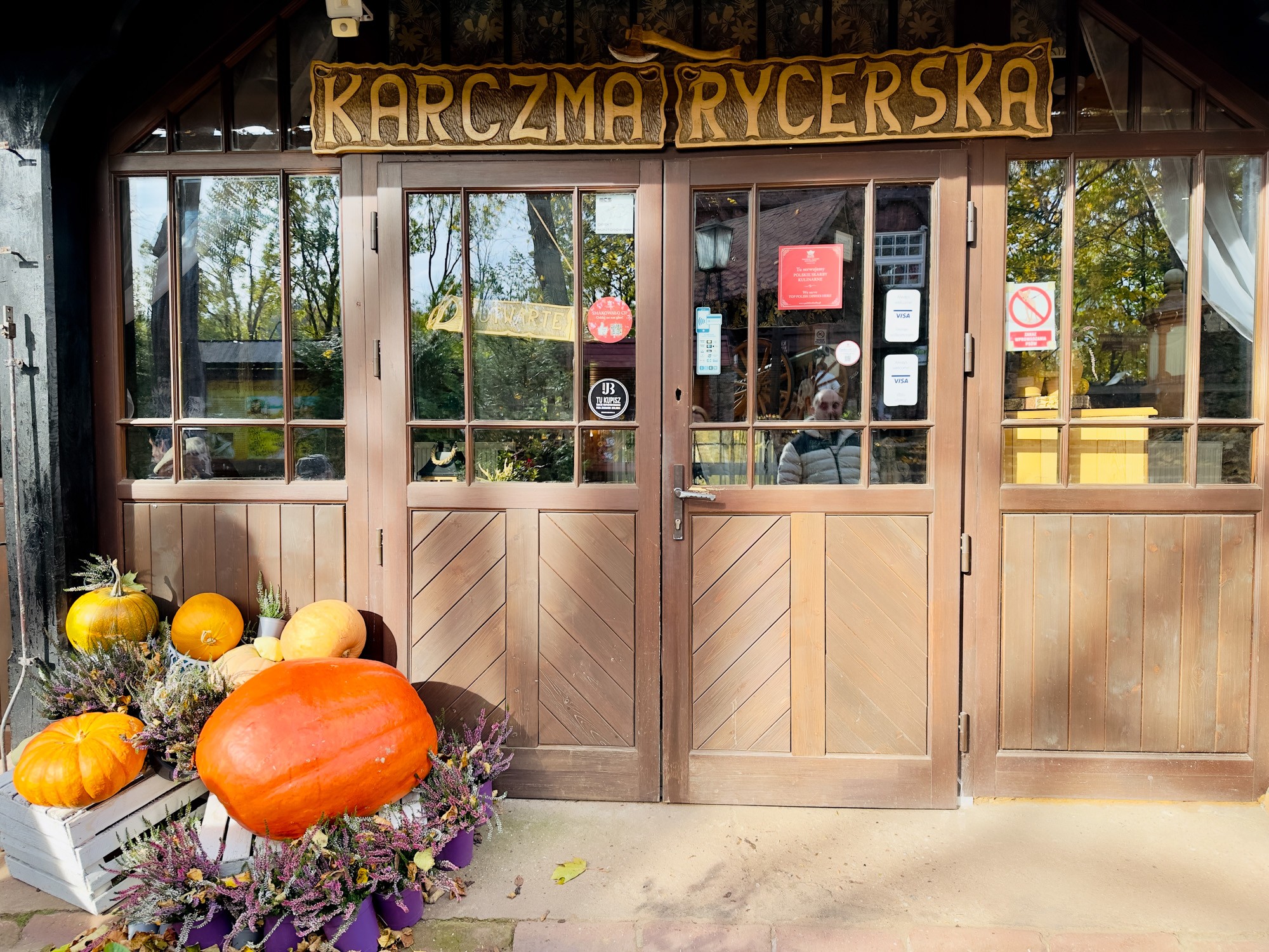 Karczma Rycerska — ресторан на нижнем дворе Замка Гродно в деревне Загуже-Сленске, Нижнесилезское воеводство, Польша. Заведение предлагает блюда традиционной польской кухни, включая региональные специалитеты, такие как «Śląskie niebo» — свиная корейка, тушенная в соусе из сухофруктов и копченого бекона, подаваемая с силезскими клёцками и красной капустой.