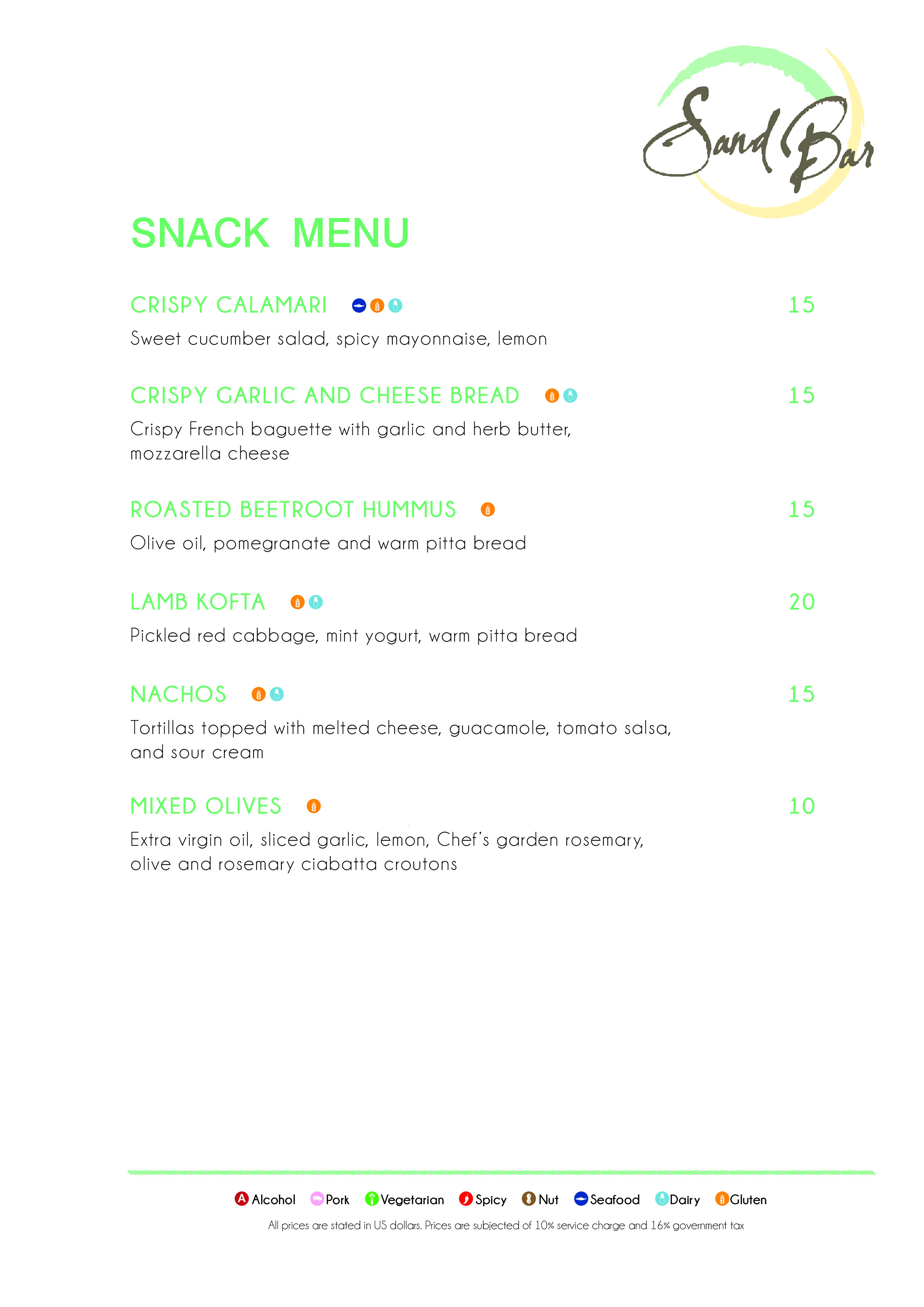 Sand Bar — идеальное место, чтобы выпить напиток на шезлонге или насладиться соблазнительными закусками, любуясь видом на океан. Расположенный рядом с пейзажным бассейном, одним из крупнейших на Мальдивах, побалуйте себя аперитивом перед ужином, любуясь потрясающими закатами, или расслабьтесь до позднего вечера с коктейлями и развлечениями.