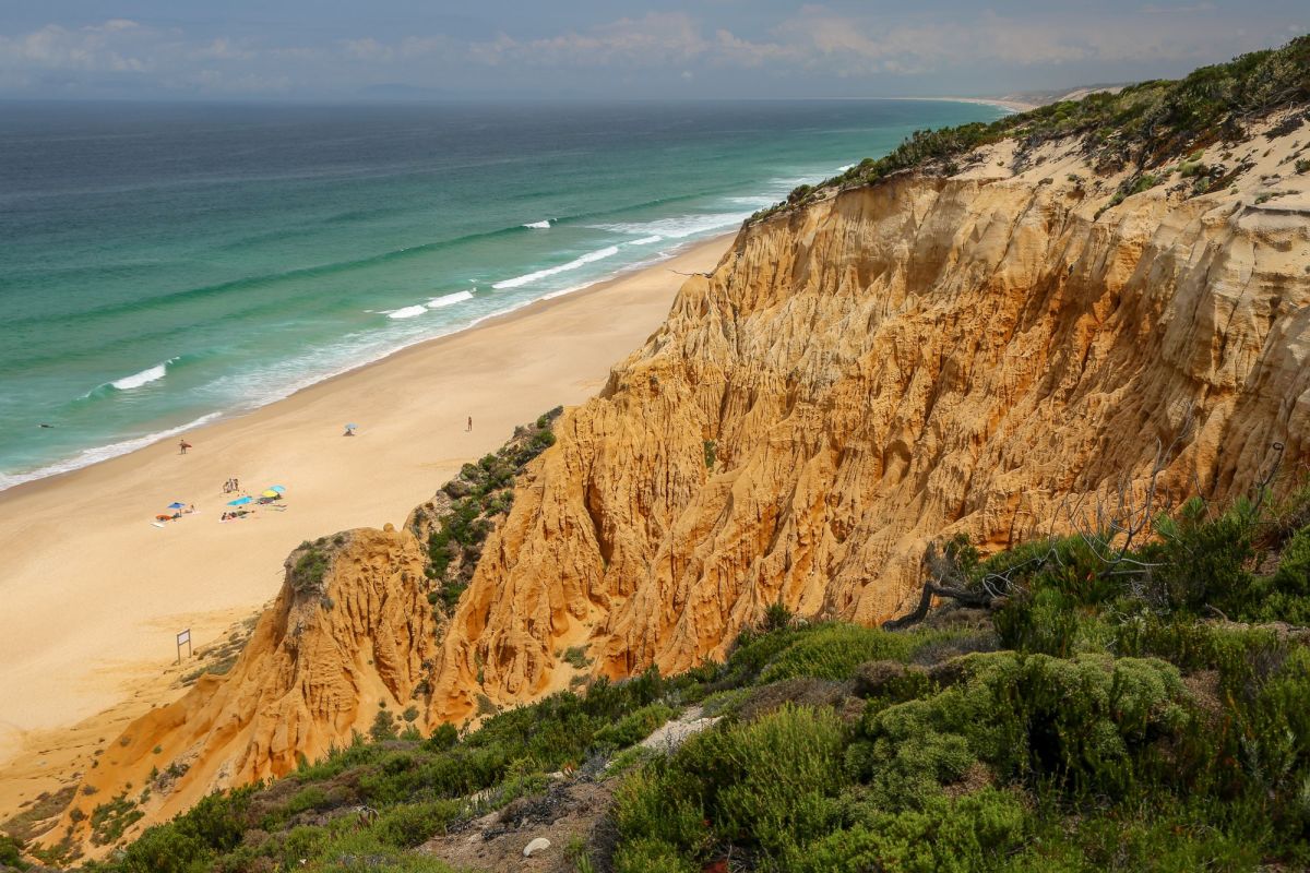 Пляж «Прайя-ди-Мелидеш» - это длинная песчаная коса между морем и лагуной (Lagoa de Melides).