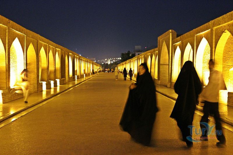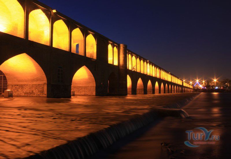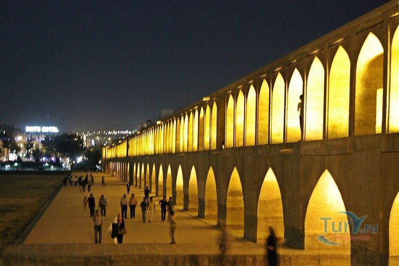 В поездке в Исфахан обязательно посетите Си-о-Се-Поль в ночное время, когда он красиво освещен.