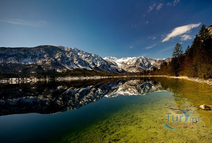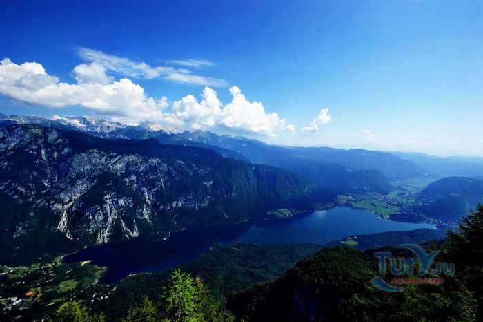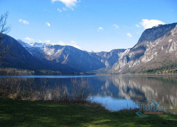 Озеро Бохинь расположено в Словении, в центре Национального парка Триглав. Бохинь - альпийское озеро ледникового происхождения, находится на высоте 526 метров над уровнем моря, с трёх сторон его окружают Юлийские Альпы. Бохиньское озеро является самым большим природным озером в Словении, занимает площадь 318 гектаров, его длина равна 4100 метров, ширина - 1200 метров, максимальная глубина - 45 метров. Бассейн озера имеет ледниково-тектоническое происхождение и был образован около 10000 лет назад в результате интенсивного эрозийного воздействия ледника Бохинь. Вода в озере достаточно холодная, летом она прогревается в среднем до 18° по Цельсию, зимой часто замерзает. Нетронутая красота высоких гор, зелёных лесов, живописных горных пастбищ и лугов, окружающих озеро, породили множество легенд и мифов. Самая известная из них - легенда о Златогоре, белой серне с золотыми рогами, которая охраняла райский сад, расположенный на высокогорном плато над долиной озера Бохинь. Золотые рога серны были источником сокровищ, спрятанных в саду. Многие пытались отыскать сокровища, в погоне за ними некий охотник ранил Златогора. Из капель крови животного выросли прекрасные розы, исцелившие серну. В ярости Златорог столкнул охотника в пропасть, а потом разрушил райский сад. Тайна триглавского сокровища так и осталась нераскрытой. На берегу озера Бохинь, в Рибчева Лаза, установлен памятник Златогору. Озеро Бохинь посещают тысячи туристов, любителей активного отдыха на природе. Десятки троп разной сложности ведут от озера к горным вершинам, есть пеший маршрут на Триглав - самую высокую гору Словении. В озере можно ловить рыбу, в его чистейшей воде водится форель. Для любителей купания здесь оборудовано множество пляжей, от больших до совсем крошечных. На озере можно заняться каякингом, парапланингом, покататься на яхте или лодке. Зимой Бохинь превращается в популярный горнолыжный курорт.