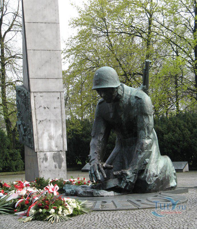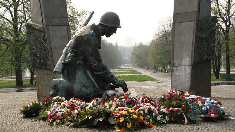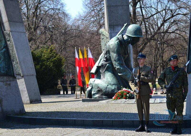 Жители Варшавы приносят живые цветы к Памятнику Слава Сапёрам в память о погибших сапёрах.