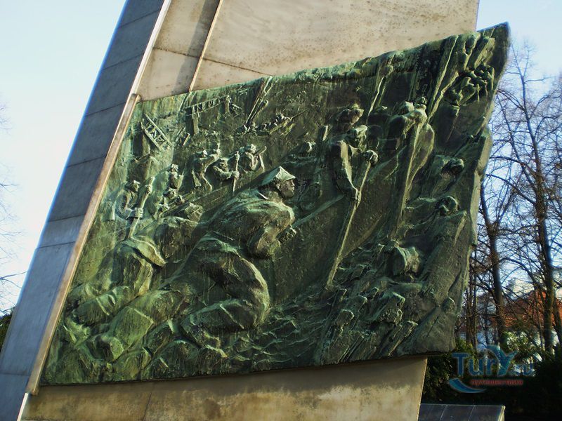 Вторая часть памятника находится в подземном переходе под Вислострадой. Она представляет собой бронзовый барельеф размером 2х7 метров, на котором изображена высадка солдат Третьего дивизиона польской армии, которые спешат на помощь восставшей столице. Третьей частью является железобетонный столп при въезде в порт, который вбит в дно реки. На нём установлены скульптуры трёх солдат, вбивающих сваю для строительства моста.