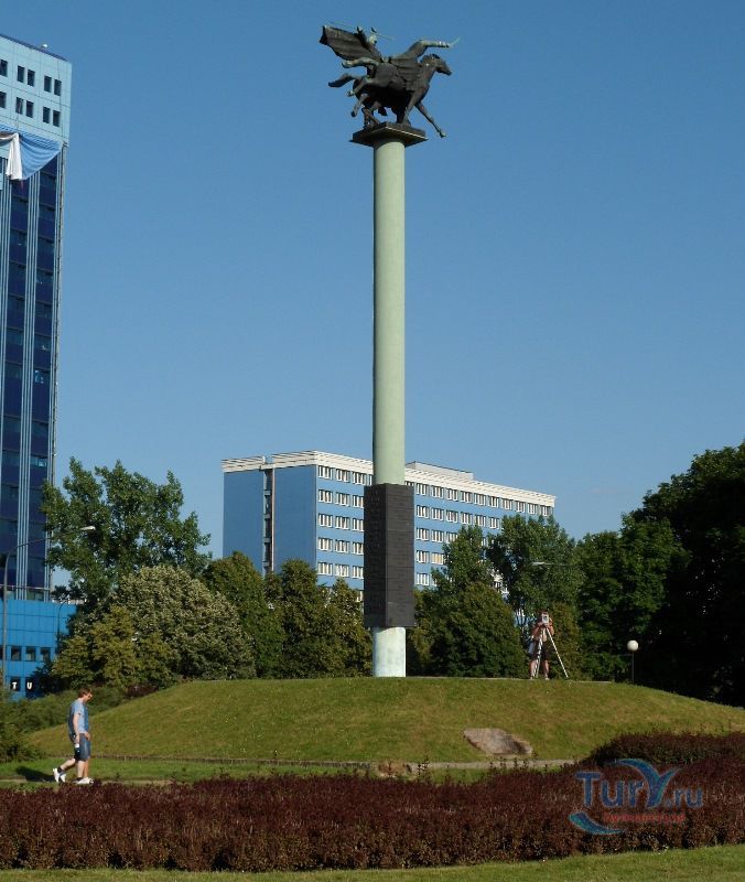 В нижней части колонны на латунных табличках видны надписи с названиями 43 самых значительных сражений польской кавалерии и их датами, где главная роль отводилась именно кавалерии. Скульптором табличек был Marek Moderau, который в своей работе использовал снаряды, полученные от военных.