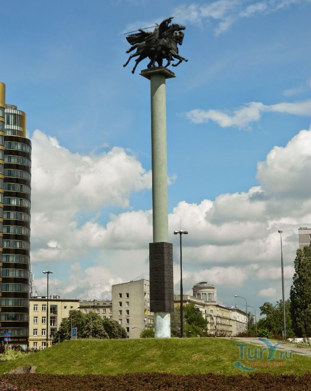 Памятник польской кавалерии высотой 16 метров был установлен в честь тысячелетия польской кавалерии бывшими кавалеристами в мае 1994 года. Идея создать подобную скульптуру появилась еще в 1978 году, однако проводились конкурсы на лучшую работу, что заняло достаточно много времени для её реализации. В итоге был выбран проект скульптора и промышленного дизайнера Мечислава Нарушевича. Он изобразил двух всадников на конях из разных периодов польской истории: первый с копьем, второй с мечом. Одного из всадников создали похожим на полковника Збигнева Старака, который был участником последнего сражения под Боруйском. Полковник был специально приглашён для того, чтоб позировать для создания памятника. Установили Памятник польской кавалерии вдоль Лазенковского маршрута.