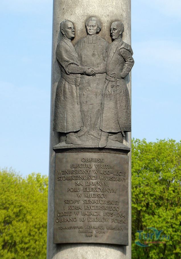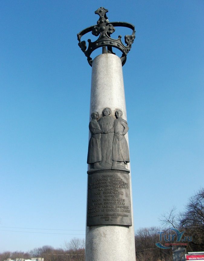 Монумент Свободный выбор был воздвигнут к 400-летней годовщине провозглашения Варшавы столицей Польши. Он расположен на перекрёстке улиц Яна Остророга и Обожова. Монумент был установлен на том месте, где когда-то были расположены избирательные поля, где народ Польши выбирал 10 польских королей. В период с 1575 по 1764 годы были выбраны такие короли, как Стефан Баторий (1576 год), Сигизмунд ІІІ Ваза (1587 год), Владислав ІV Ваза (1632 год), Ян ІІ Казимир Ваза (1648 год), Михаил Корибут Вишневецкий (1669 год), Ян ІІІ Собеский (1674 год), Август ІІ Сильный (1697 год), Станислав Лещинский (1704 год), Август ІІІ Веттинов (1733 год), Станислав Август Понятовский (1764 год). Монумент Свободный выбор изготовлен по проекту скульптора Станислава Михалика по инициативе Общества Друзей Варшавы. Представлен монумент в виде колонны с гранитной основой и бронзовой короной. С западной стороны колонны помещён барельеф, изображающий персонажей из образов картины "Выборы короля Станислава Августа", известного итальянского художника Каналетто. Торжественное открытие памятника состоялось 19 июня 1997 года. Монумент расположен в середине круглой, вымощенной гранитом, площади с выпуклой поверхностью. На периферии площади размещены буквы, образующие словосочетание "Electio Viritim". Рядом с монументом планируется строительство Музея свободных выборов.