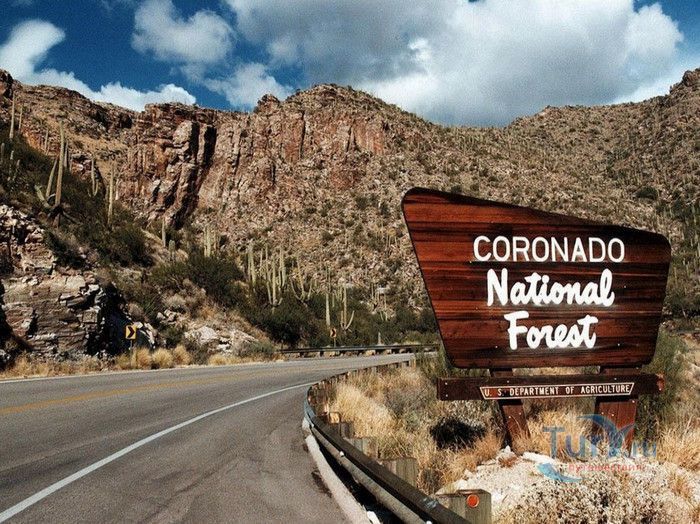 Национальный Лесной Заповедник Коронадо расположен в Соединённых Штатах Америки, на юго-востоке штата Аризона и юго-западе Нью-Мексико, занимает площадь 7200 квадратных километров. На территории Национального леса Коронадо расположены несколько горных хребтов, так называемых "небесных островов", которые возвышаются среди пустыни, и каждый имеет свою уникальную экосистему. Национальный лес Коронадо характеризуется большим видовым разнообразием растений и диких животных. На территории заповедника обитают более 576 видов млекопитающих, птиц, рептилий и амфибий. Во время подъёма к вершинам горных хребтов, благодаря смене природных поясов и температур воздуха, путешественники в течение одного дня могут наблюдать все четыре времени года - лето, весну, осень и зиму. В жаркой пустыне туристы могут увидеть гигантские кактусы цереус, в долинах - красочные полевые цветы, насладиться прохладой у горного потока или поиграть в снежки на горной вершине. Для посетителей парка разработаны увлекательные туристические маршруты, организованы кемпинги и зоны отдыха. Наиболее популярными видами деятельности в парке являются походы, верховая езда, катание на горных велосипедах, скалолазание. После прогулки по пустыне, можно покататься на лыжах на горе Леммон, которая считается самым южным горнолыжным курортом в Соединённых Штатах.