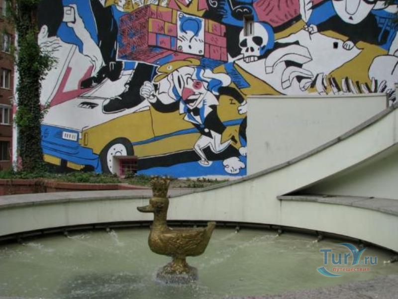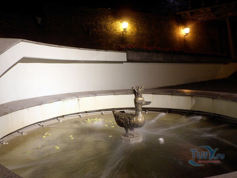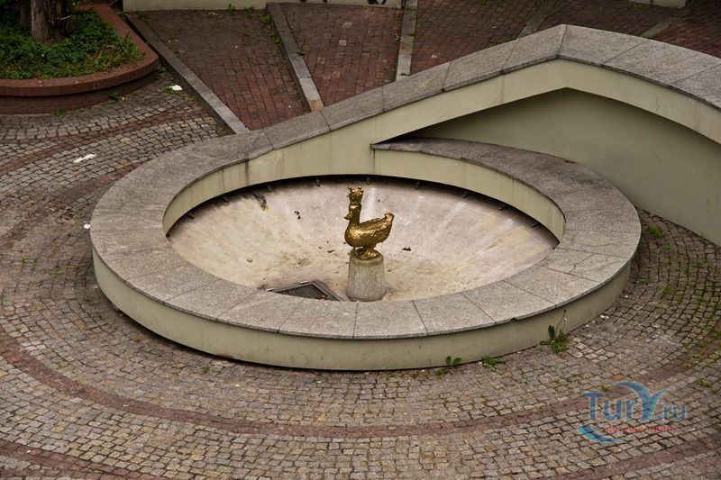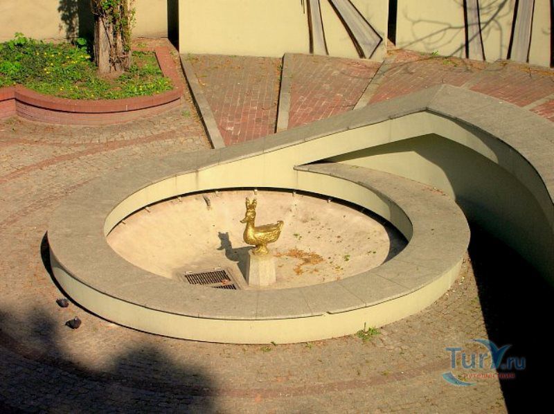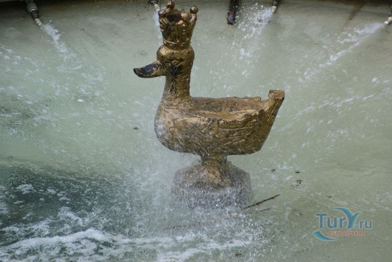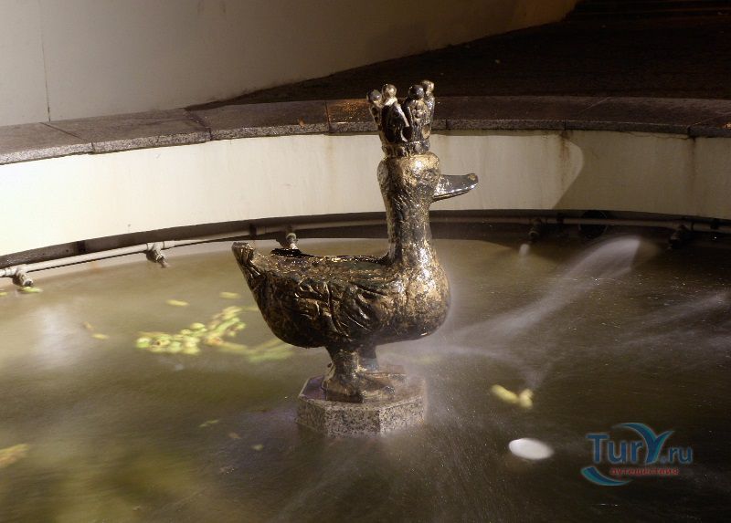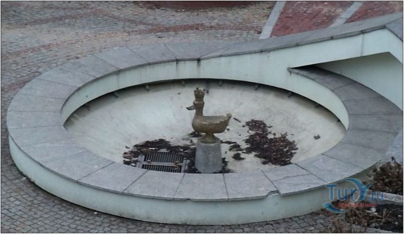 В память об этой легенде посреди фонтана установлена металлическая скульптура золотой утке.