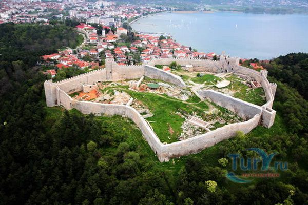 Крепость царя Самуила – одно из старейших и крупнейших сохранившихся фортификационных сооружений Македонии. Крепость - визитная карточка и один из самых популярных туристических объектов Охрида. Свою историю цитадель начинает еще в 3 веке до н.э. — именно этим временем датируются первые упоминания о крепости города Лихнидос, построенной королем Филиппом II Македонским, и слывшей одной из самых неприступных на Балканах. Крепость представляет собой сооружение длиной 3 километра с мощными 16-ти метровыми стенами и 18-ю массивными башнями. Одно крыло крепости спускается к западному побережью Охридского озера, а другое идет в восточном направлении до верхних ворот, проходит через них и, устремляясь на юг, также спускается под наклоном к озеру. Изначально входов в город было три, однако до наших дней сохранились только южные ворота.
