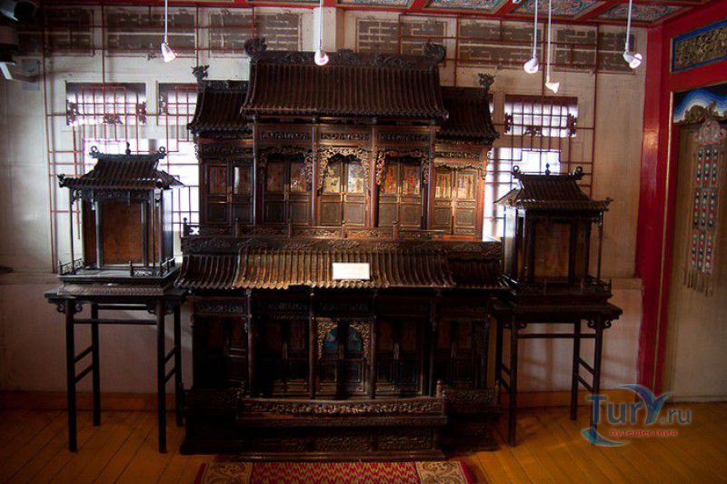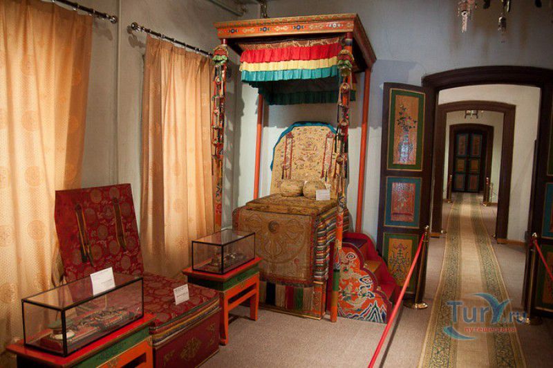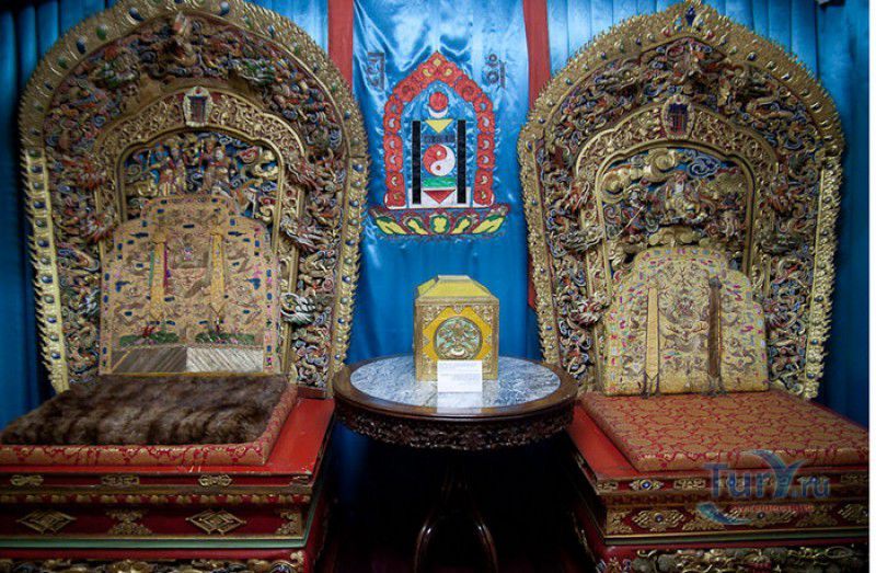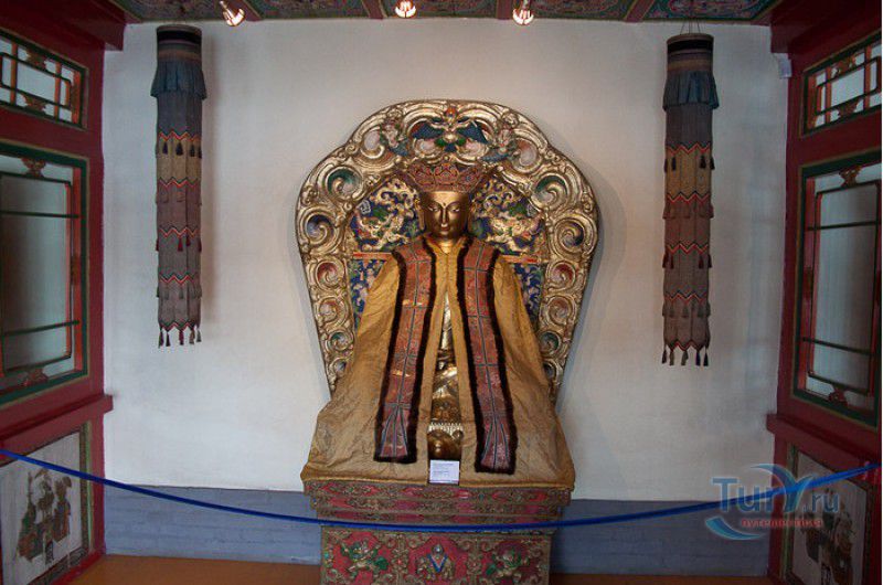 Дворец-Музей Богдо-Гэгэна расположен Монголии, в юго-восточной части Улан-Батора, в районе Баянзурх. Дворец строился как резиденция Джебцзундамба-хутухты - Богдо-гэгэна VIII, "живого" Будды, Богдо-хана и главы буддийской общины Монголии. Строительство дворцового комплекса было начато в 1893 году и завершено в 1903 году, в течение 10 лет над созданием дворца трудились лучшие монгольские зодчие и мастера. Архитектурный ансамбль имеет три смежных двора, главная ось которых проходит с юга на север. В состав комплекса входят Зимний и Летний (построенный в китайском стиле) дворцы, семь храмов и несколько ворот (главные, триумфальные, святые, центральные, левые и правые). От главных ворот сохранился только трехстворчатый щит ям-пай, отгоняющий от дворца злых духов. Деревянные Триумфальные ворота построены в 1912-1919 годах в честь освобождения Монголии от власти маньчжурского Китая и восстановления независимости страны. При их строительстве не было использовано ни одного гвоздя, ворота богато украшены резьбой и керамическими фигурками птиц, рыб, собак, львов, всадников на конях. Крыша покрыта железной кровлей, имитирующей черепицу, и окрашена в зелёный цвет. За Триумфальными следуют Святые ворота, построенные под руководством монгольского архитектора Багажава. Ворота представляют собой памятник деревянного зодчества Монголии начала XX века. Конструкция состоит из 8 колонн, на которых высится семиярусная крыша, украшенная фигурками богов в образах животных. В декоре Святых ворот использованы резьба по дереву, живопись, золотая роспись по красному лаку. Перед воротами установлены два деревянных шеста высотой 10 метров, на которых во времена Богдоханского государства развивались государственный флаг Монголии и религиозный жёлтый флаг. В первом дворе Летнего дворца расположены храмы Махараджей, Аппликативной (шёлковой) живописи, Живописи танка, Милосердия и две беседки. Во втором дворе находятся храмы Библиотеки, Божеств и трёхэтажный Главный храм, в котором Богдо-гэгэн VIII совершал ежедневные молитвы. К восточной стене Летнего дворца примыкает третий двор, посреди которого стоит двухэтажный кирпичный дом, окрашенный в белый цвет, с простым крыльцом и окнами с наличниками. Именно такое здание, построенное по подобию здания консульства России, захотел иметь в качестве своего Зимнего дворца Богдо-гэгэн VIII. Дворец построен в 1905 году по проекту русских архитекторов и является первым в Монголии зданием в европейском стиле, предназначенным для главы Ламаистской церкви. Богдо-гэгэн VIII жил в нём вместе с супругой Цэндийн Дондогдулам до самой смерти в 1924 году, на втором этаже располагались покои Богдо-хана и его жены, на первом этаже - помещения для обслуживающего персонала. Дворец Богдо-гэгэна - одна из немногих в Монголии исторических достопримечательностей, не уничтоженная во время религиозных репрессий, в 1926 году в Зимнем дворце был открыт Национальный музей Монголии, преобразованный в 1961 году в Музей-резиденцию Богдо-хана. Коллекция музея насчитывает более 8000 произведений искусства, среди которых картины, портреты, скульптуры, музыкальные инструменты, изделия из золота, серебра и нефрита, культовые предметы, троны Богдо-гэгэна VIII и его жены, карета и паланкин, леопардовая юрта, парадные и ритуальные одежды, мебель, в том числе музыкальные кр