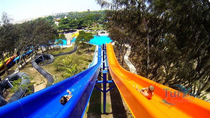 На территории парка с великолепной архитектурой, проводится масса развлекательных мероприятий и интересных программ. И взрослых и детей приводят в восторг разнообразные водные аттракционы - бассейн с искусственными волнами и всевозможные водные горки: «Танцующие драконы», «Гигантские шаги», «Ленивая речка» и «Камикадзе».