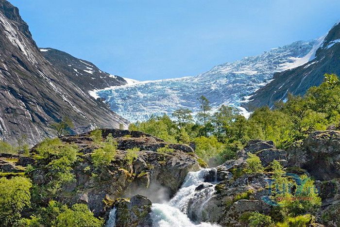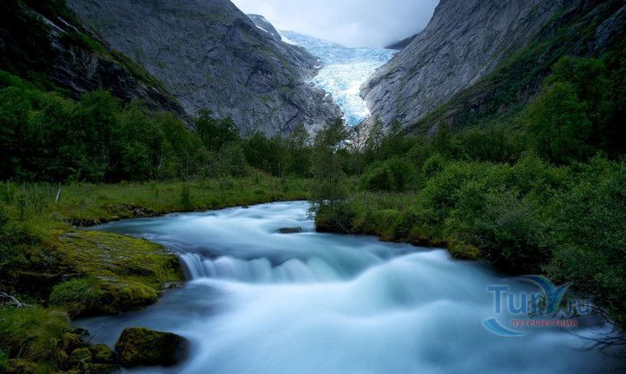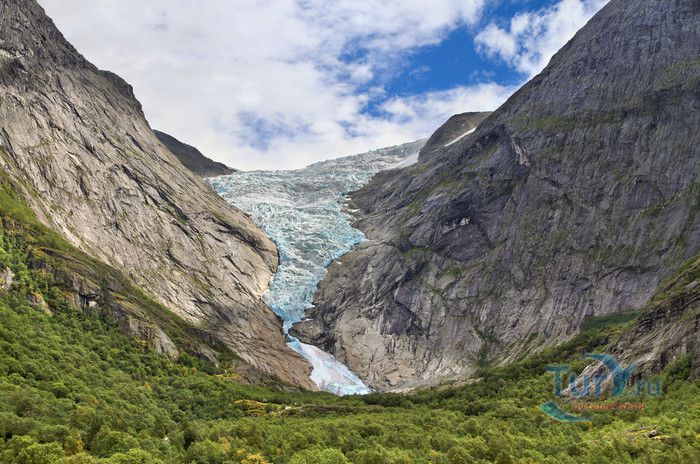 Ледник Бриксдайлбреен расположен на территории Национального парка Йостедалсбрин, является одним из языков ледника Йостедалсбреен, крупнейшего ледника в континентальной Европе. Бриксдальсбреен спускается с высоты 1200 метров в долину Бриксдайл, к небольшому ледниковому озеру, находящемуся на высоте 346 метров над уровнем моря. За 1000 лет существования ледник несколько раз менял свои размеры. Согласно наблюдениям учёных, ледник рос с 1900 по 1929 год, в 1934 - 1951 годах Бриксдайлбреен уменьшился на 800 метров, с 1967 по 1997 год льды снова наступали и покрыли всё озеро. С 2000 по 2007 года учёные фиксировали убыль ледника, с 2007 по 2010 года - рост, и снова убыль. Размер ледника Бриксдальсбреен зависит от температуры воздуха и количества осадков. Из-за постоянного изменения и движения ледяных масс высока вероятность схода лавин. Ледник считается опасным местом, и очень близко к нему приближаться не рекомендуется. Из-за постепенного таяния льда то тут, то там раздаётся треск льда, а иногда куски или даже огромные ледяные глыбы откалываются и летят вниз, разбиваясь о камни. Несмотря на опасность и запрет приближаться к леднику, его невероятная красота манит туристов со всего мира. Цвет льда, в зависимости от погоды, меняется от светло-голубого до тёмно-голубого. К леднику можно отправиться от горного домика Briksdalsbre Fjellstove, по маршруту длиной 2,5 км, пешком или на электромобилях Тролль, а также, в сопровождении гида, на больших резиновых лодках проплыть по озеру, рядом с местом спуска в воду ледяной массы.