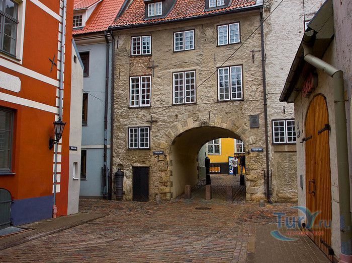Шведские Ворота - единственные из восьми городских ворот Риги, которые сохранились в неизменном виде до наших дней. Ворота были построены в 1698 году, чтобы соединить внутренний город с казармами и домами, расположенными за городскими стенами. Как и другие городские ворота, они запирались на ночь и открывались на рассвете. Ключи от ворот хранились в городской ратуше, а прочность запоров "страховала" ночная стража. По одной версии своё название ворота получили, так как были построены во время шведского владычества в Риге. По другой - название дано в честь героизма шведов, проявленного ими в 1710 году, во время Северной войны, когда русские войска осаждали Ригу. Город защищал шведский гарнизон, и только эпидемия чумы и голод заставили его сдаться. Пётр I по достоинству оценил мужество шведских солдат и, войдя в город, отпустил его защитников. Ворота, через которые они покидали Ригу, были названы Шведскими. Как ни одни другие городские ворота, Шведские обрастали множеством легенд. Согласно одной - ворота прорубил в своём доме местный предприимчивый купец, чтобы брать плату со всех проезжающих через них. Другая легенда гласит, что в ворота была замурована девушка, тайно от родителей встречавшаяся со шведским офицером. Пойманная девица в наказание и в назидание остальным, была заживо замурована в Шведские ворота, и по сей день влюблённые могут в полночь услышать её шёпот: "И все-таки я его люблю!". Местные старожилы рассказывают также, что в доме над воротами некоторое время жил палач, который предупреждал горожан об очередной казни, выставляя в окне красную розу. В 1926 году Шведские ворота были арендованы у города Обществом архитекторов Латвии. Дом и ворота были реконструированы по проекту архитектора Александра Трофимова. Здание приобрело вид, приближенный к тому, который оно имело первоначально. Фронтону, порталам, консолям с масками были приданы характерные барочные черты. Сегодня, кроме Союза архитекторов, здесь располагаются библиотека и творческая студия.