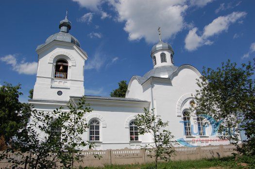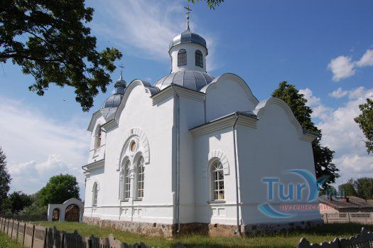 Расположен в центре деревни. Построена в 1865 из кирпича на месте предыдущего деревянного храма с колокольней, который был построен в 1599 г. Памятник архитектуры ретроспективно-русского стиля. Здание симметричной продольно-осевой композиции: 2-ярусная колокольня, прямоугольная в плане трапезная, кубовидный молитвенный зал, апсида. Двускатная крыша и граненый сферический купол колокольни завершены луковицеподобными головками на граненых барабанах. Фасады прорезаны парными и одинарными арочными оконными проемами.