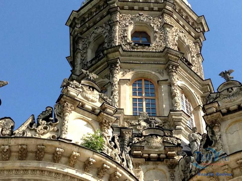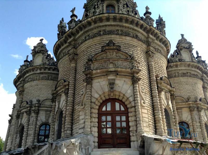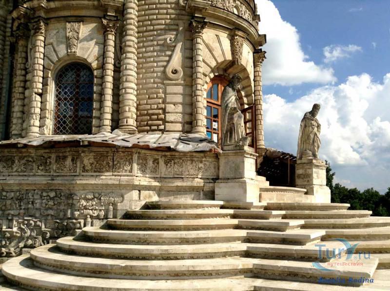В 1690 году князь Голицын заложил в Дубровицах белокаменную Знаменскую церковь - храм необыкновенной красоты, при закладке которого присутствовал сам Пётр Первый. Храм представляет собой столпообразное здание на высоком постаменте, окруженное открытыми галереями с веерообразными лестницами. Над первым четырёхлепестковым ярусом возвышается стройная восьмигранная башня, увенчанная оригинальным ажурным куполом. Храм снаружи и изнутри богато украшен барельефами, резьбой по камню и круглой скульптурой. Характерные скульптуры и латинские надписи, которые позже были заменены на русские, свидетельствуют о подражании западноевропейским католическим барочным храмам, но есть здесь что-то и от «нарышкинского барокко». Голицын смог воплотить столь дерзкий архитектурный замысел и создать такой шедевр во многом благодаря близости к Петру I.