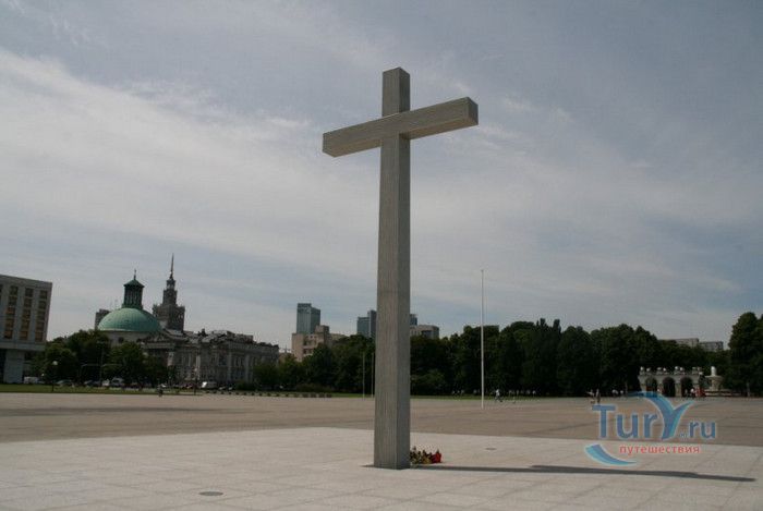 Памятник Папский Крест расположен на площади Пилсудского в Варшаве, напротив Могилы неизвестного солдата. Открытие памятника состоялось 6 июня 2009 года. Его открыли варшавский митрополит архиепископ Казимеж Ныч и мэр Варшавы Ханна Гронкевич-Вальц. Папский крест установлен в том месте, где 2 июня 1979 года Папа Римский Иоанн Павел II отслужил Святую мессу во время паломничества в Польшу и произнёс памятные слова, высеченные на плите рядом с крестом: "Да сойдёт Дух Твой и восстановит лик земли. Этой земли. Аминь". В конкурсе на лучший проект памятника в память о визите Папы Римского Иоанна Павла II участвовали 54 работы, его победителем стал совместный проект дизайнеров Марека Куциньского, Ежи Межвяка и Наталии Вильчак. Крест выполнен из белого гранита, имеет высоту 9 метров, стоимость памятника - 1 600 000 злотых. "Папский Крест является символом веры, стойкости и надежды" - сказала на открытии памятника мэр столицы Ханна Гронкевич-Вальц.