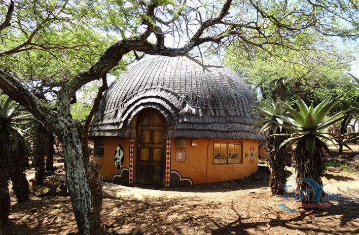 «Чакалэнд» - действующий музей под открытым небом, воссоздавший облик традиционной зулусской деревни. Деревня носит название «Чакалэнд», в честь предводителя племени «зулу» короля Чаки, наводившего ужас на все племена юга Африки. Чака был незаконнорожденным сыном вождя племени зулу. Он не только вернул себе власть, но и сделал зулусов самыми могущественным племенем в этих местах. Чака создал могущественное войско, оснастив его на то время самым современным вооружением, ввел новые порядки и традиции, организовав колоссальную экспансию на огромной территории. Принцип борьбы был таков: «Врагу надо наносить такие удары, от которых он уже не сможет оправиться. Либо он перестанет существовать как самостоятельное племя, либо снова попытается схватить нас за горло». В результате беспощадной тирании было уничтожено множество непокорных племен. Король поддерживал жесткую и даже жестокую дисциплину. Например, после смерти своей матери, вождь запретил всему своему населению пить молоко, засеивать поля и исполнять танцы на два года. Зулусы чуть не вымерли от голода и изнурения. Не удивительно, что жизнь вождя закончилась трагично. Его задушил собственный брат с двумя приближенными полководцами. История деревни, считающейся резиденцией короля зулусов, начинается в 1984 году, когда для съемок сериала «Вождь Чака» (1986 год) было специально построено несколько традиционных зулусских краалей. Телесериал, пользовавшийся большой популярностью, приобрели многие зарубежные компании, а исполнитель главной роли Генри Сел (Henry Cele), стал телевизионной звездой. В финальной сцене фильма были беспощадно сожжены все деревни зулусов, кроме одной, в которой жил отец Чака. После съемок фильма, деревня «Чакалэнд» превратилась в место сохранения традиций народа «зулу». Это поселение, в настоящее время превращенное в отель, совмещенный с этнографическим комплексом, знакомит с обрядами и традициями народа зулу. В принципе, в окрестных деревнях зулусы живут примерно так же, как и двести лет назад, но, понятно, что цивилизация пришла и сюда. Программа посещения комплекса начинается с просмотра документального фильма про деспотичного вождя, после чего туристов приглашают в деревню. Здесь можно заглянуть в задымленное жилище шамана-целителя – сангому, который погадает на костях и проведет ритуал очищения от злых духов. После, англоговорящий, одетый в шкуры, зулус-гид расскажет о великой зулусской армии и о быте и традициях племени зулу. Например, бело-красный флаг над хижиной означает, что в ней живет влюбленный человек: белый цвет – символ чистоты, красный – то, что за любовь нужно сражаться. Во время ознакомительной прогулки гости деревни смогут понаблюдать за различными традиционными работами — сооружением хижины, изготовлением копий, приготовлением пива, художественной отделкой бисером и гончарным промыслом. Воины племени продемонстрируют свои навыки боевого искусства «ассегаай». В гостях у вождя племени туристов угостят старинным африканским блюдом из мяса (на большую порцию рассчитывать не стоит), а также местным тростниковым самогоном – пиватсвалом. Ну а вечером, за ужином, накрытом в соломенной хижине, декорированной в традиционном африканском стиле, и отведав экзотических блюд с дегустацией местного пива, гости могут посмотреть шоу перед 
