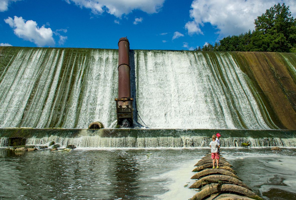 По слухам, своим внешним видом плотина обязана ЦК Компартии УССР товарищу Шелесту, который питал слабость к мощным красотам Ниагарского водопада. По другим сведениям, идея сооружения, а также проект плотины принадлежит инженерам гитлеровской Германии, поскольку верховное руководство СС рассматривало Житомир в качестве месторасположения ставки Гиммлера и планировало поднять воду в верховьях реки Тетерев.
