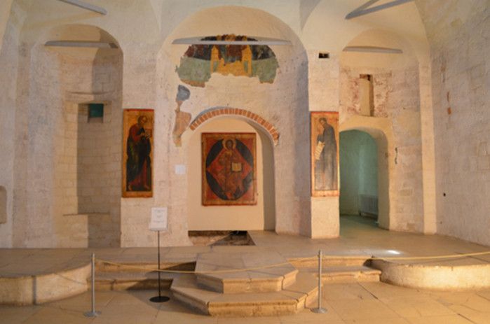 Покровская церковь - редчайший памятник русской средневековой архитектуры, древнейшим ядром которого является знаменитый домовый храм царя Ивана. На гранях его шатра сохранилась уникальная, не имеющая аналогов, фресковая роспись, заказчиком которой был сам Иван Грозный. Роспись поражает совершенством утонченного рисунка, лаконичностью художественного языка, неординарным подбором изображенных святых. Долгие часы проводил первый русский царь Иван IV в этом храме, творя молитвы и размышляя о судьбе вверенного ему государства.