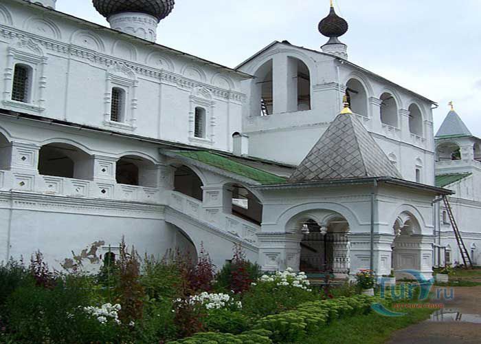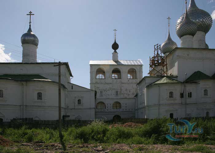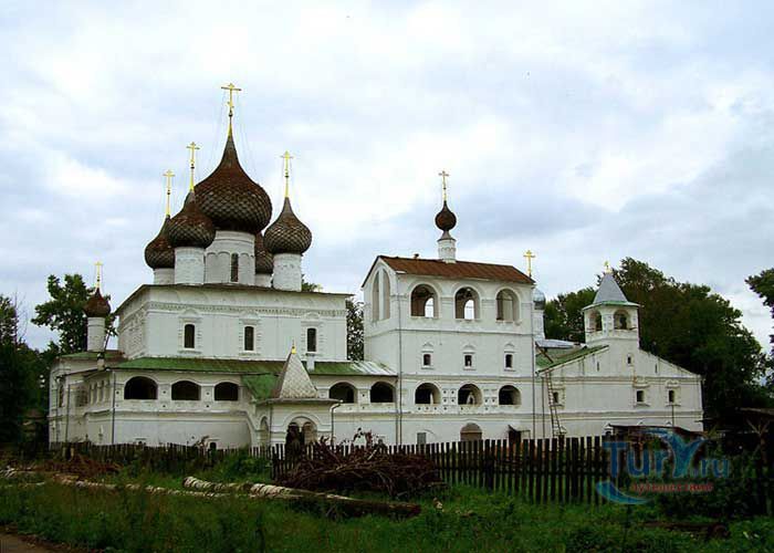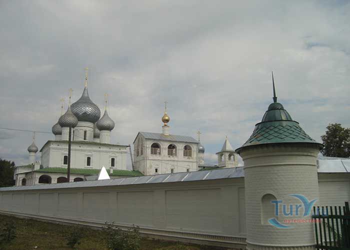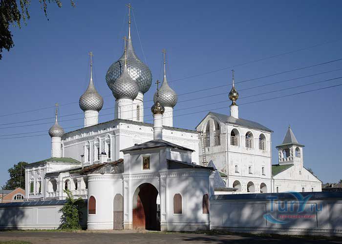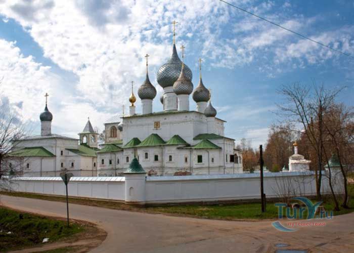 Воскресенский православный мужской монастырь в Угличе расположен на живописном берегу реки Волга. Впервые в хрониках монастырь упоминается во второй половине XV века. Изначально все здания обители были деревянными. В 1674 году, по распоряжению ростовского митрополита Ионы, монастырь стал застраиваться каменными зданиями. Все здания монастыря строились одновременно. Воскресенский собор, звонница, трапезная палата с церковью Смоленской богоматери - все эти монастырские постройки, расположенные по одной оси, с севера на юг, они выстроены в ряд и соединены гульбищем, что придаёт комплексу большую слитность и цельность впечатления. Хотя высота зданий разная, они как бы уравновешивают друг друга и дополняют. Этот красивый скульптурный ансамбль с разных точек осмотра выглядит великолепно, композиция его кажется удивительно продуманной и взвешенной. Несомненно, что Воскресенский монастырь является одним из выдающихся творений русского ансамблевого зодчества XVII века и не только для Углича, но и для России. В Воскресенском монастыре хранились замечательные произведения древнерусского и декоративно-прикладного искусства. Храмовая икона "Воскресение со страстями", написанная царскими изографами в первой трети XVII века, крест серебряный позолоченный, потир и звездица 1678 года, вложенные в монастырь Ростовским Митрополитом Ионою, Евангелие печати 1644 года, подаренное обители Н.Е. Протопоповым. Небольшая монастырская библиотека хранилась в Смоленском храме.