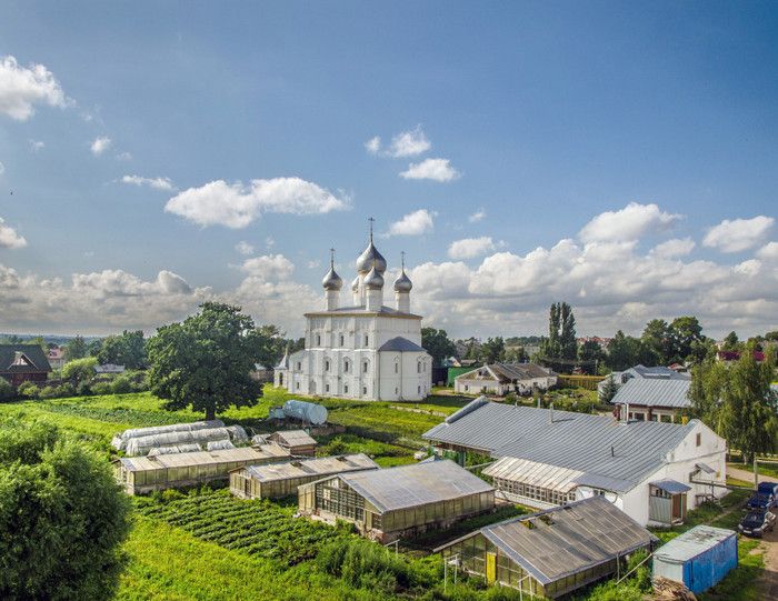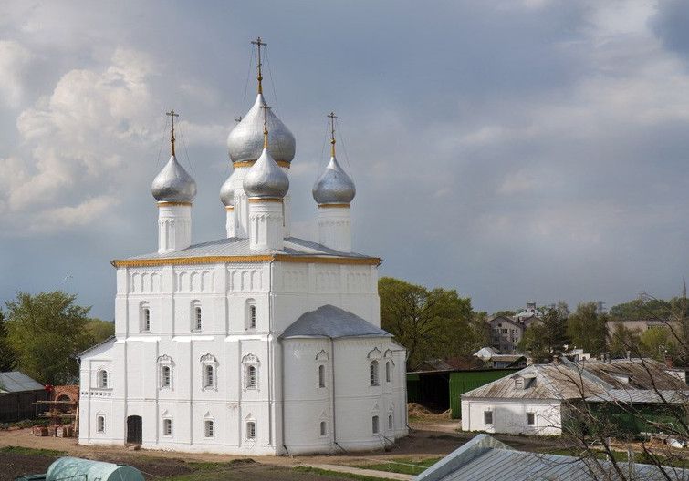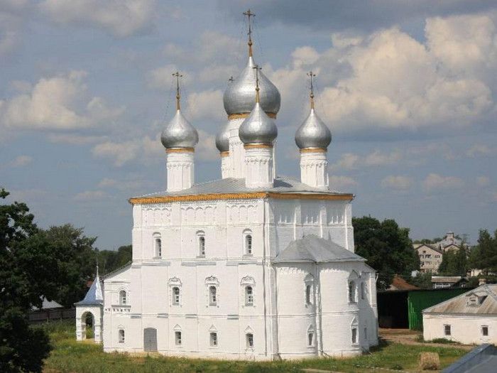 Церковь Спаса на Песках в Ростове возвышается рядом с Яковлевским монастырем. Пятиглавый храм Спаса на Песках - в прошлом соборный храм существовавшего здесь Спасо-Песоцкого (Княгинина) монастыря, основанного во второй половине XIII века княгиней Марией – дочерью тверского князя Михаила и женой князя Василька Ростовского. Каменное строительство в обители началось в конце XVI или в начале XVII века, тогда и была построена соборная церковь Спаса Преображения (Спаса на Песках). В главном помещении этого храма, слева от входа, имеется надпись XIX века, рассказывающая о том, что Спасская церковь была освящена митрополитом ростовским Кириллом 1 июля 1603 года. В 1764 году монастырь по указу Екатерины II был упразднен, а в 1765 году все его храмы были приписаны к соседнему Яковлевскому монастырю. В XIX веке не приносившие доход храмы бывшего Спасо-Песоцкого монастыря были разрушены. Сохранилась лишь Спасская церковь. С тех пор храм неоднократно перестраивался. В дошедшем до нас виде Спасская церковь – пятиглавое, двухсветное на подклете сооружение с двухсторонней галереей, тремя пониженными апсидами и прекрасными маковицами, близкими по форме к маковицам XVI века. Верхняя часть фасадов главного четверика церкви и нижние части барабанов ее глав снабжены аркатурными поясами, каждое звено которых имеет шлемовидное завершение. Стены фасадов разделены по вертикали гладкими лопатками. Некоторые окна храма обрамлены фигурными наличниками, выложенными из тесаного кирпича. Фасады галереи украшены керамическими вставками с изображениями всадников, цветов и схематических картин строительных работ. В конце XVII века помещения церкви и галерей были оштукатурены, а восточная стена ниже иконостаса расписана фресками, характерными для ростовских стенописей того времени. Проемы алтарных дверей богато украшены орнаментами. Промежутки между иконами нижнего ряда и иконостасом заполнены фризами с изображениями летящих в облаках ангелов. Фигуры ангелов в белых одеждах украшают и колонки перед алтарными вратами. Живопись исполнена в лазурно-бирюзовых и золотистых тонах. Роспись на стенах храма и галереи выполнена в XIX веке по штукатурке XVII века.
