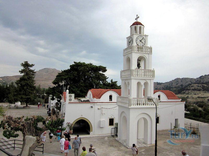Знаменитый чудодейственный монастырь Богородицы Цамбики (Тсампики) считается покровителем острова Родос. На самом деле монастыря два - старый, известный также под именем Кира (Богоматерь), расположен на вершине, прямо над морем, и новый - расположен немного в стороне от главной дороги. Дорога в 300 ступенек ведет к монастырю, посвященному Богоматери. Согласно легенде, название "Цамбика" (переводится как "зарево огня") Пресвятой Богородице было дано одной бездетной семьей. Однажды ночью муж увидел высоко на горе отсветы огней. Это повторялось и в следующие две ночи, и мужчина отправился посмотреть. На горе он обнаружил икону Святой Девы Марии, от которой и исходило свечение. Мужчина пообещал построить на этом месте монастырь, если его жена забеременеет. Вернувшись домой, он узнал радостную новость. Родившаяся девочка была названа Тсамикой, как и построенный монастырь. Местная история гласит, что Дева Мария творит чудеса - женщине нужно только подняться босиком по ступенькам. В результате многие дети острова названы в честь Богородицы - Цамбикос или Цамбика.
