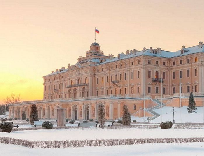 Константиновский дворец - памятник архитектуры XVIII века, дворцово-парковый ансамбль в Стрельне, расположенный на южном берегу Финского залива. Парадная резиденция в Стрельне была основана Петром I. Строительство дворцово-паркового ансамбля началось с закладки Нижнего регулярного парка в 1715 году, а в 1720 году архитектор Николо Микетти приступил к возведению большого каменного дворца. После смерти Петра I работы по возведению дворца прекратились. В 1750-х годах достройку дворца поручили архитектору Бартоломео Растрелли, однако, вплоть до конца XVIII века строительство дворца так и не было завершено. В 1797 году усадьба утратила статус императорской резиденции и повелением Павла I перешла к его сыну Константину, превратившись, таким образом, в загородное имение великих князей дома Романовых. После революции во дворце размещалась Первая Стрельнинская школа-колония, в 1937 году в нём открылся санаторий, затем - курсы усовершенствования высшего и среднего состава ВМФ. В 1950-х годах дворец, серьезно пострадавший во время оккупации Стрельны фашистскими войсками, был переоборудован в корпус Ленинградского арктического училища. В начале XXI столетия Константиновский дворцово-парковый ансамбль получил статус Государственного комплекса Дворец конгрессов. В 2003 году, к 300-летию Санкт-Петербурга, во дворце были проведены масштабные восстановительные работы - по старинным чертежам были восстановлены фасады и интерьеры дворца, парк, система каналов, сооружены мосты и фонтаны. Возрожденный Константиновский дворец соединил в себе функции государственной резиденции и современного делового, музейного, культурного и выставочного центра. Комплекс является особо охраняемой территорией, его посещение возможно только в составе экскурсионных групп.