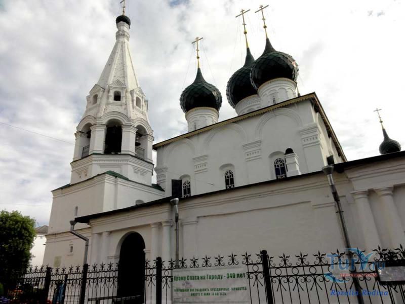 Храм Спаса Преображения на Городу расположен в историческом центре Ярославля, на Которосльной набережной. Белый храм с зелеными устремленными ввысь куполами имеет вековую историю. Храм был построен в 1672 году на пологом спуске к берегу Которосль. Главная достопримечательность храма - это фрески. В 1693 году церковь расписывали 22 мастера во главе с Лаврентием Севастьяновым, Федором Федоровым и Иваном Дмитриевым. Старший из них - Лаврентий Севастьянов писал иконы в Федоровской церкви Ярославля вместе со знаменитым Гурием Никитиным. Лаврентий - сын известного ярославского первостатейного мастера Севастьяна Дмитриева в сюжетах фресок храма использовал элементы народного быта. Так царица Елена, отправляясь в Палестину, едет в крестьянской телеге, а церкви, основанные ею в "святой земле", напоминают простые деревянные срубы Ярославского посада. С XVI века стоит Церковь Спаса Преображения на Городу. Пять веков в храм приходят люди со своим горем и радостью, с верой и надеждой, очищая души и получая Божью благодать.