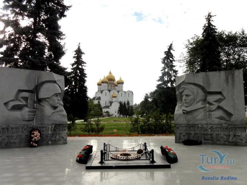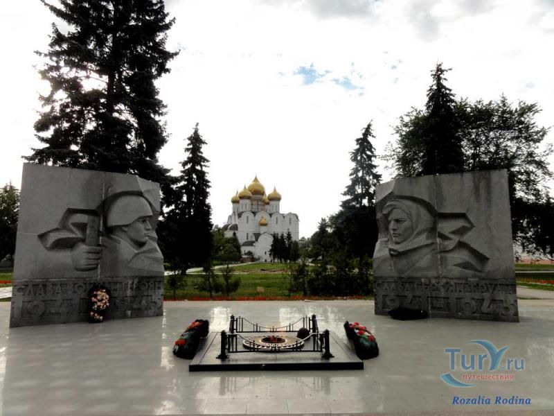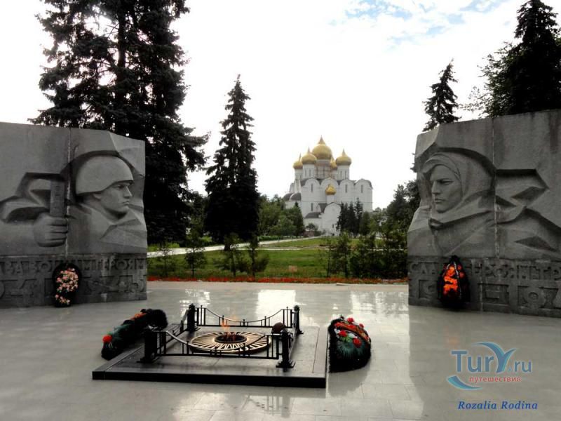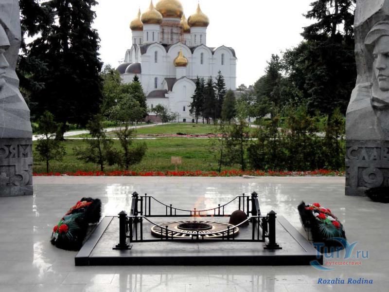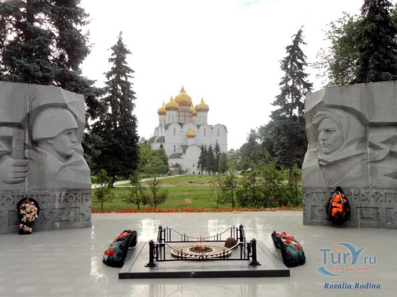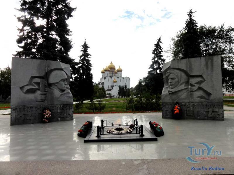 Памятник-монумент в честь боевой и трудовой славы в годы Великой Отечественной войны 1941 - 1945 годов в Ярославле был установлен в 1968 году. Вечный огонь расположен на бульваре Мира, на площади Челюскинцев, в историческом центре города. Памятник представляет собой две рельефные гранитные стены и расположенный между ними вечный огонь. На левой к зрителю стене изображён воин - символ всех мужчин сражавшихся за освобождении от немецко-фашистских оккупантов. На правой стороне женщина-труженица и мать - символ самоотверженности женщин, сумевших в суровые годы войны выстоять духом, заменить на заводе и в поле тех, кто ушел сражаться за Родину. С конца 2000-х годов в проёме между стенами открывается вид на Успенский кафедральный собор. Монумент находится в живописном парке, при посещении которого у людей остается чувство радости, спокойствия и уверенности в завтрашнем дне.
