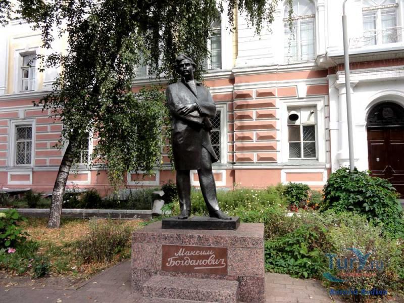 Памятник Максиму Адамовичу Богдановичу установлен в городе Ярославле, в сквере у входа в главный корпус Демидовского университета. Открыт памятник 9 декабря 1981 года, в день 90-летия со дня рождения Богдановича. Максим Адамович Богданович - белорусский поэт, публицист, литературовед, переводчик, классик белорусской литературы, один из создателей белорусской литературы и современного литературного белорусского языка. Лирика Богдановича тесно связана с устной народной поэзией, национально-освободительными идеями, проникнута любовью к трудовому народу. В некоторых стихах звучит протест против мира насилия и социальной несправедливости.