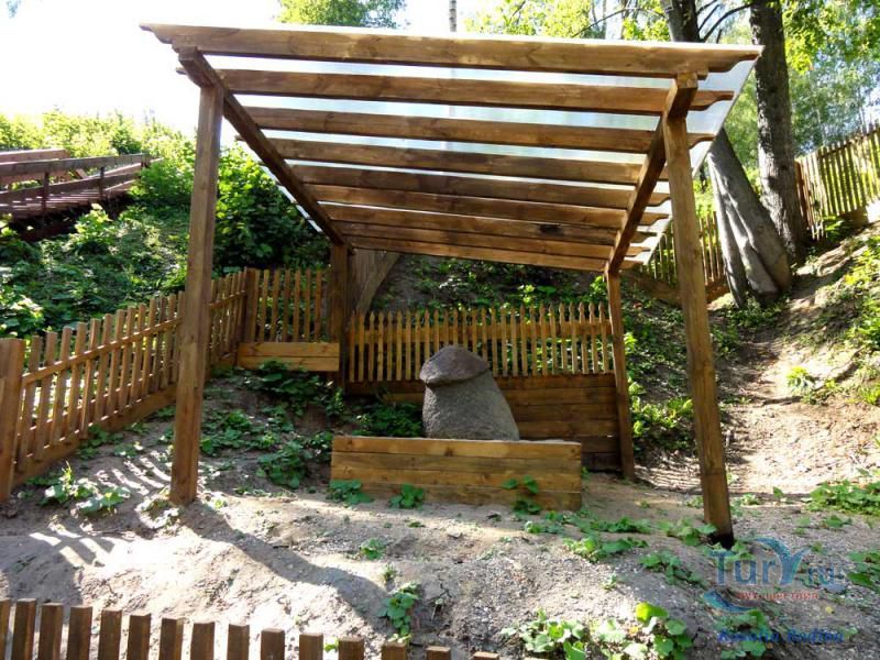 В городе Плес есть очень оригинальный камень, который называют Камнем любви. Находится он у подножия горы на въезде к торговой площади. Камень своё название получил благодаря необычной форме. C Камнем любви связано много легенд. Одни считают, что это языческий знак плодородия. Другие рассказывают легенду о том, что больше века назад жил зажиточный купец, который в довольно преклонном возрасте взял себе в жёны молодую девушку. По городу пошли различные насмешки над таким неравным браком. В ответ на это купец заказал мастерам каменный фаллический символ, который поставил рядом со своим домом. Смысл этого не совсем понятен, но местные жители рассказывают о том, что если девушка посидит на этом камне, то обязательно в течение года выйдет замуж и обязательно станет матерью.