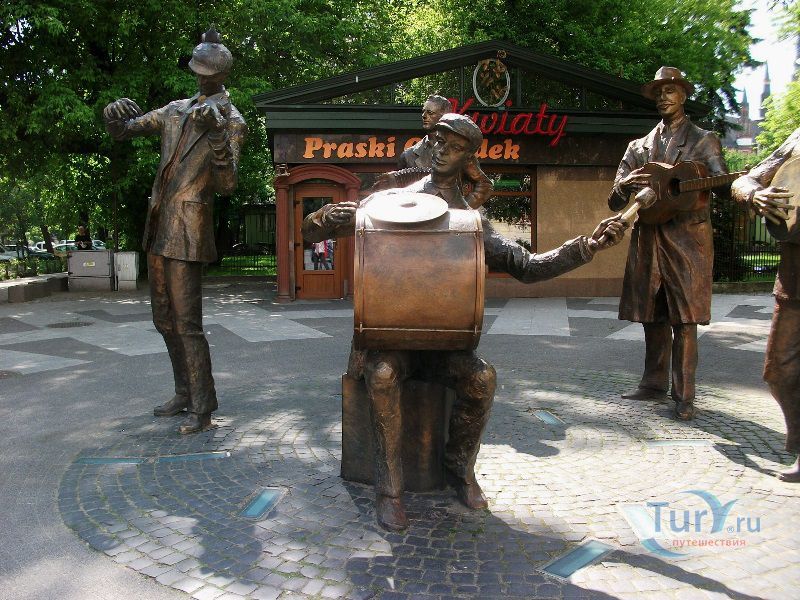 Памятник Пражской Группе трудно не заметить, прогуливаясь улицами Варшавы, в столичном пражском районе. Это памятник уличной музыкальной группе, исполнявшей народный фольклор. Памятник расположен на пересечении улиц Флорианской и Клопотовского, в северной части района Старой Праги, недалеко от собора, Театра Прага, Старой синагоги и Виленского железнодорожного вокзала. Инициатором создания Памятника Пражской Группе был архиепископ Варшавы Лешек Гладзь Славой. Памятник выполнен скульптором Анджеем Ренесом. 17 сентября 2006 года он был установлен в сквере перед курией Варшава-Прага. На постаменте увековечена выполненная из латуни музыкальная группа в составе которой скрипач, гитарист, аккордеонист, барабанщик и музыкант с банджо. Ночью памятник освещается разноцветными огнями. Вокруг памятника был выстроен квадрат со скамейками, где можно отдохнуть и послушать песни, исполняемые уличной музыкальной фольклорной группой, в том числе довоенные песни и песни польских легионов, спетые во время оккупации в Варшаве. Всего записано 100 песен. Песни звучат после отправления смс на номер 7141 с текстом "BAND" или "KAPELA". Пражская Группа популяризует народный ансамбль Варшавы с 1 сентября 1988 года, вот уже 27-й год она на Варшавской сцене. Позади памятника находится небольшой цветочный магазин, где можно приобрести романтическую розу и возложить её у ног статуи уличных пражских музыкантов под их мелодию "Красные яблоки". Аккордеонист и вокалист Пражской уличной музыкальной группы Чеслав Якубик сказал: "Мы принимаем этот памятник, как дань уважения музыкантов в Варшаве, как знак братства между всеми музыкальными группами народной музыки". Памятник Пражской Группе является одним из самых интересных памятников в Варшаве.