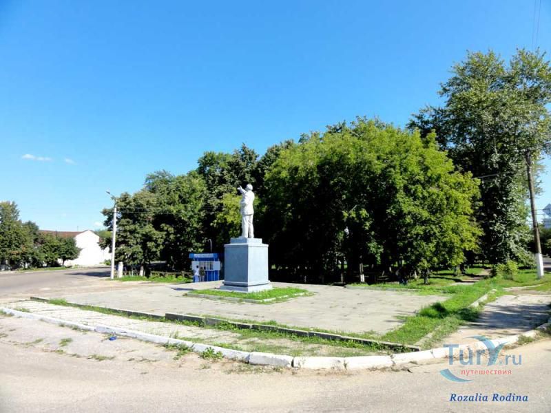 За памятником очень интересное здание гостиницы, которую в городе по привычке называли "Клусовскими нумерами". Известно, что еще до революции здесь появился первый в городе кинематограф. Здание разобрали в 1960-х годах. На его месте поставили кафе "Встреча". Справа в гору идет узвоз, невидимый за старым амбаром, в котором торговали якорями и прочим речным такелажем. Рядом находится музей ”Сатиры и юмора Остапа Бендера”.