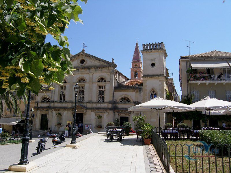 Католический кафедральный собор Святых Иакова и Кристофера расположен на восточной стороне Ратушной площади (Town Hall Square). Он был построен в 1588 году. Классическое венецианское здание XVI века является одним из лучших образцов архитектуры барокко в Греции.