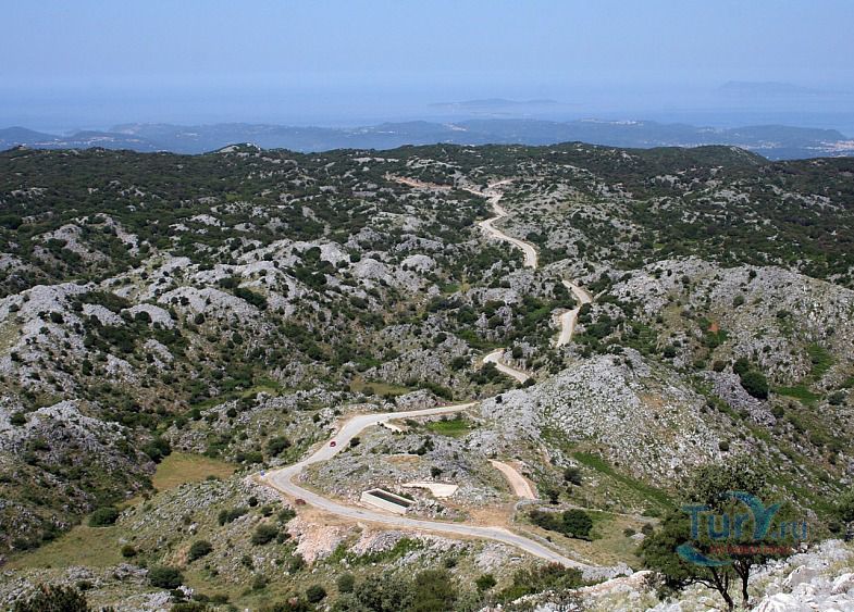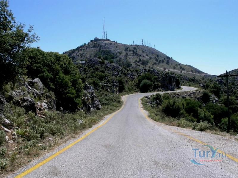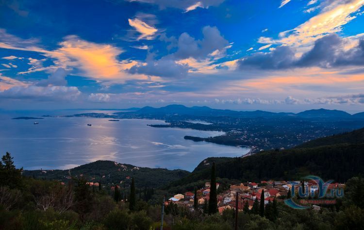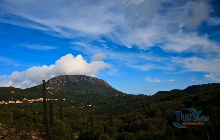 Гора Пантократор - это древнее горное образование, которое тянется от мыса Фалакро до мыса Псаромита и достигает максимального уровня на вершине, давшей название всей цепи. Пантократор - это высшая точка острова Корфу, высота которой составляет 906 метров над уровнем моря. Она возвышается в северо-восточной части острова. С вершины горы хорошо виден не только весь остров Корфу, но и соседняя Албания. В самые ясные дни отсюда можно разглядеть даже Италию, берег которой находится на расстоянии 130 километров. К пику ведет узкая дорога с многочисленными крутыми поворотами, на вершине находится кафе, телекоммуникационная станция и монастырь.